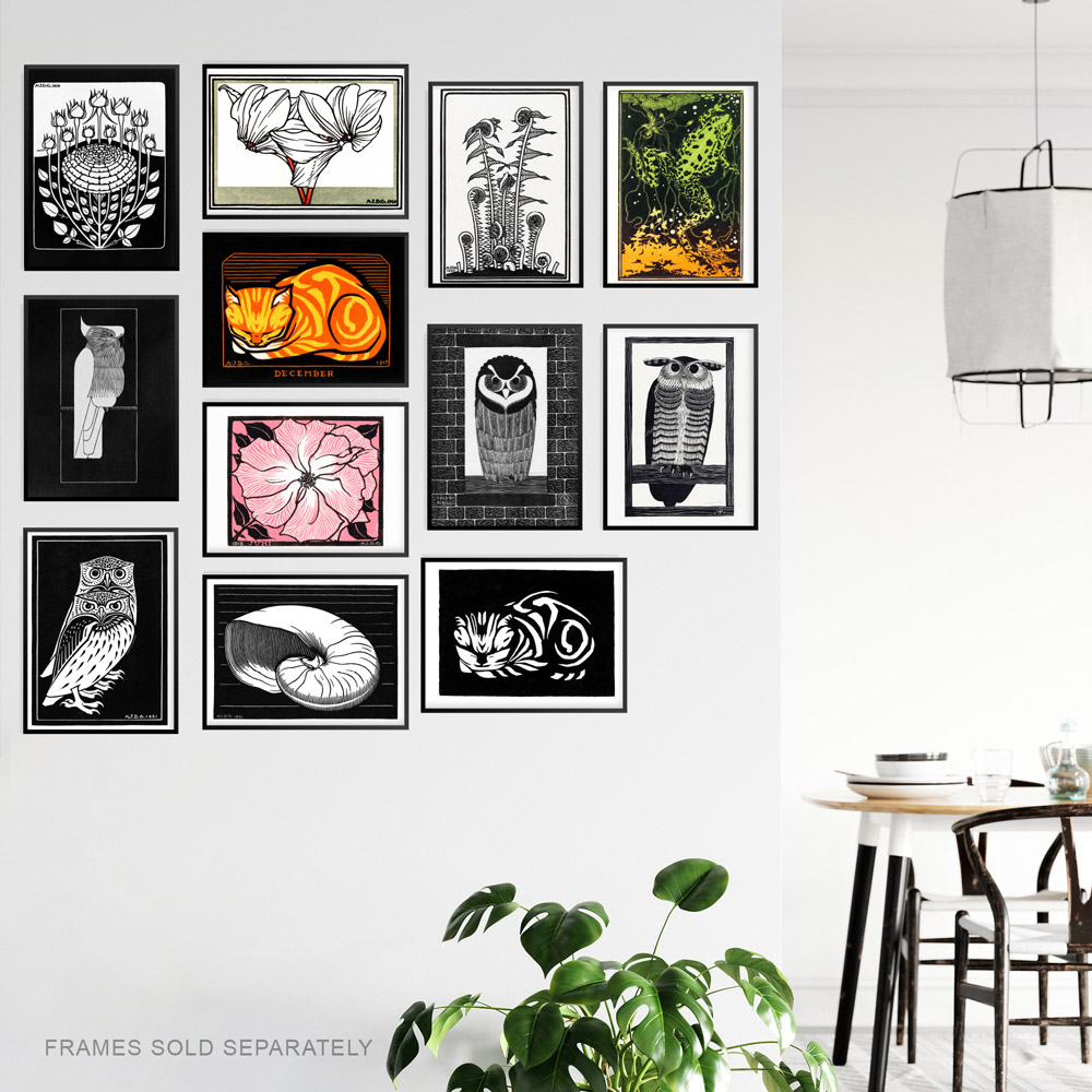 Elevate your living space with the enchanting charm of the Julie De Graag Vintage 1917 Owl Cat Frog Fern Plants Animals Wall Art Prints. This exquisite collection comprises twelve unframed prints that blend art nouveau elegance with the mystique of nature. Each print measures 30 x 41 cm and is crafted on thick, luxurious art paper, ready to add a touch of vintage flair to your bathroom or bedroom. While the prints may display slight colour variations due to screen settings, they promise to be a captivating addition to your decor.