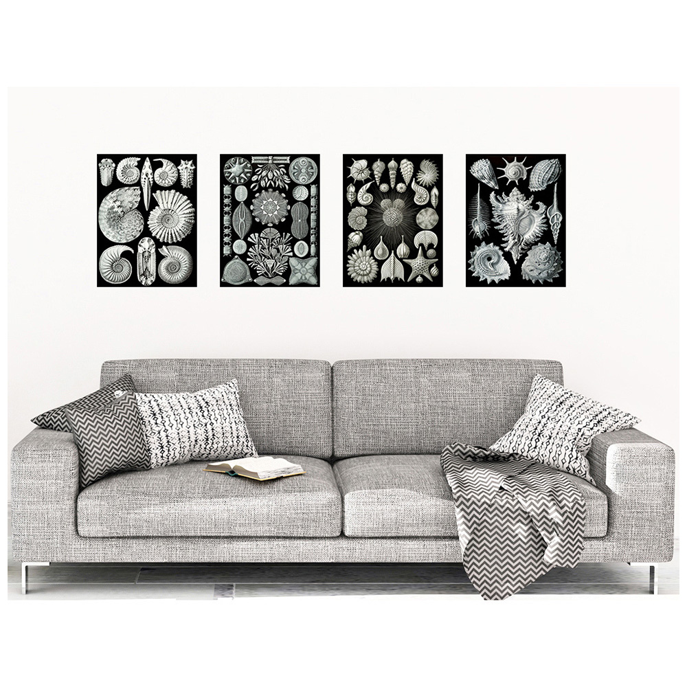 Elevate your space with the 'Set of 4 Ernst Haeckel Nature Sea Shells Vintage Biology Wall Art Prints', perfect for adding a touch of vintage charm to any bathroom. Each piece in this exquisite collection measures 30 x 41 cm and showcases high-quality, unframed prints on luxurious art paper. Whether you're looking to inspire a nature-themed decor or simply adore vintage biology illustrations, these prints are bound to captivate and add a scholarly flair to your interiors. While they are ready for framing to match your personal style, please be aware that screen settings might slightly alter the colour perception.