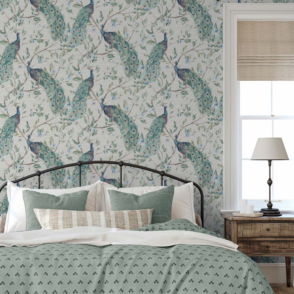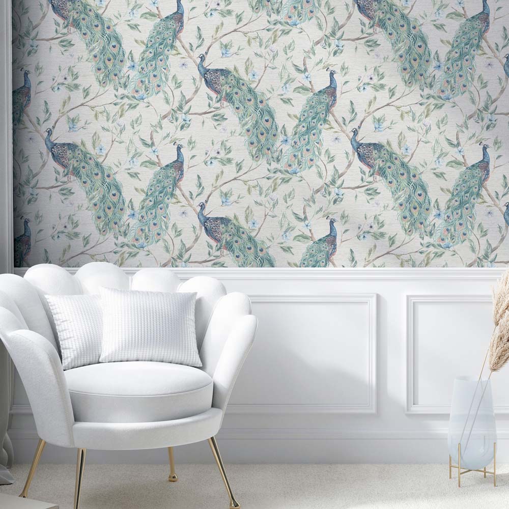 The Arthouse Keeka Bird Blue Wallpaper features elegant peacocks with delicately designed feathers, interwined with timeless florals. The wallpaper design is set on a fashionable neutral cream and the peacocks have metallic highlights to really lift the design. A great wallpaper that will look perfect as a feature wall or on all four walls, hung in any room it will surely make a statement. Hanging method: Paste the paper. Pattern match: Offset 26.5cm. Pattern repeat: 53cm.