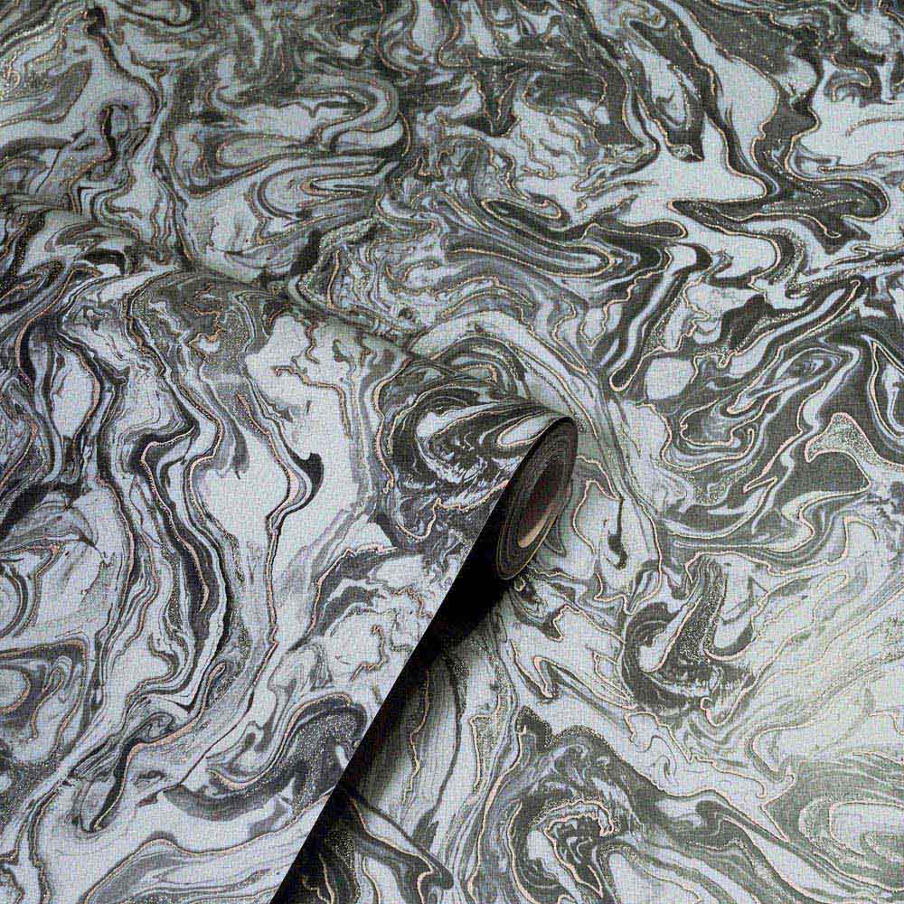 Make a stylish statement in your home with this liquid marble wallpaper from Arthouse. The design features swirls to mimic the look of marble in tones of charcoal and hints of grey, accented with metallic encased glitter. Easy to apply, this spongeable wallpaper would make an ideal choice for a feature wall in an open-plan living room or a bedroom. Hanging Method: Paste the Paper. Pattern Match: Off Set 26.5cm. Pattern Repeat: 53cm. Roll Length: 10.05m. Width: 53cm.