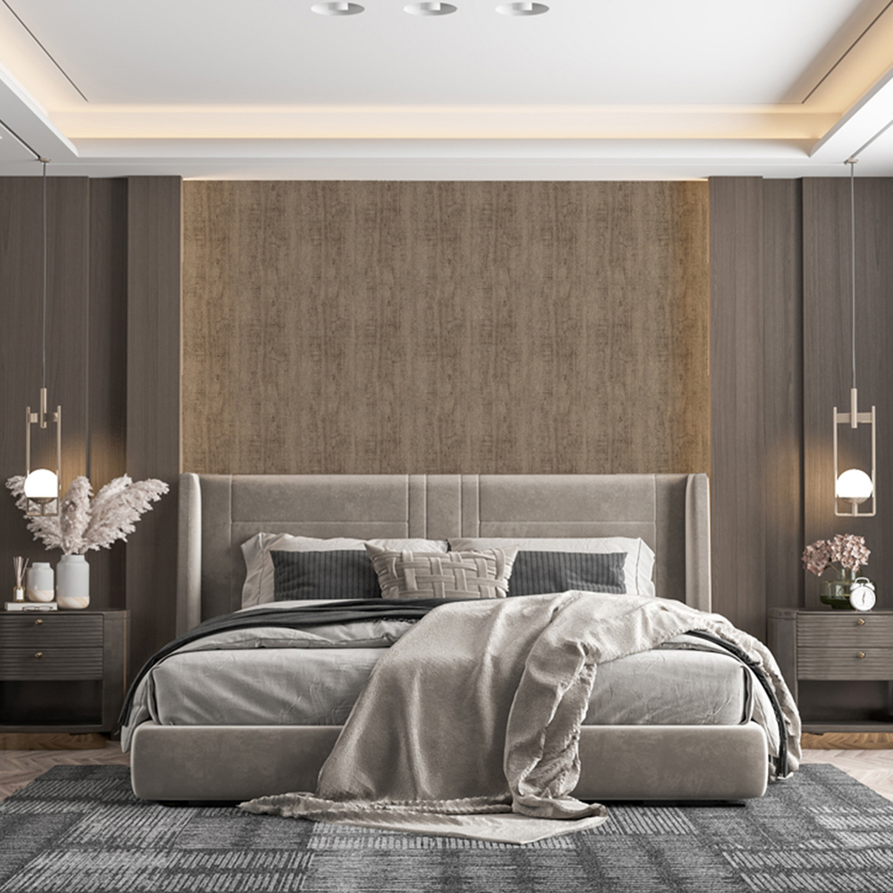 Modernize your home with our Luxe Timber wallpaper in cool Slate. This contemporary design captures the essence of woodgrain in a sleek, updated palette. The neutral grey tone provides a versatile backdrop that adds subtle texture and interest to any room, complementing a wide range of interior styles.
