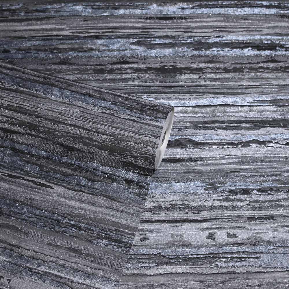 Augment the ambience of any room with this premium Sahara wallpaper by Arthouse. Crafted to make an impact, the wallpaper features an abstract design inspired by different textures that could mimic stone or metal. The addition of metallic and glitter effects across the wallpaper lifts the design to create an amazing look and a luxurious rich palette in your home. Being a heavyweight vinyl wallpaper, it is perfect for use on all four walls to create sumptuous heaven in high traffic areas. Ideal to naturally suit any interior decor style, the wallpaper will add a touch of elegance to your home. Colour: Denim blue. Application: Paste the paper. Design match: Straight match. Design repeat: 53cm. Roll length: 10.05m, width: 53cm.