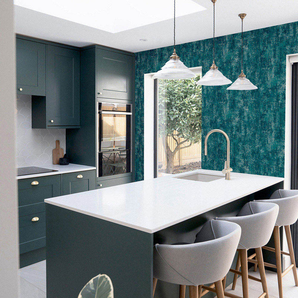 Add a natural vibe to a room with this striking and modern Stone Textures Emerald Wallpaper from Arthouse. Blending a rough textured stone effect with subtle metallic highlights, the overall look is lived-in yet luxurious - and the mixture of rich emerald green and gold tones introduces a sense of indulgent depth to a room. The perfect backdrop to a moody living room or dining room, this washable wallpaper embraces the trend for minerals and organic effects. Hanging Method: Paste the Paper. Pattern Match: Off Set 32cm. Pattern Repeat: 64cm. Roll Length: 10.05m. Width: 53cm.