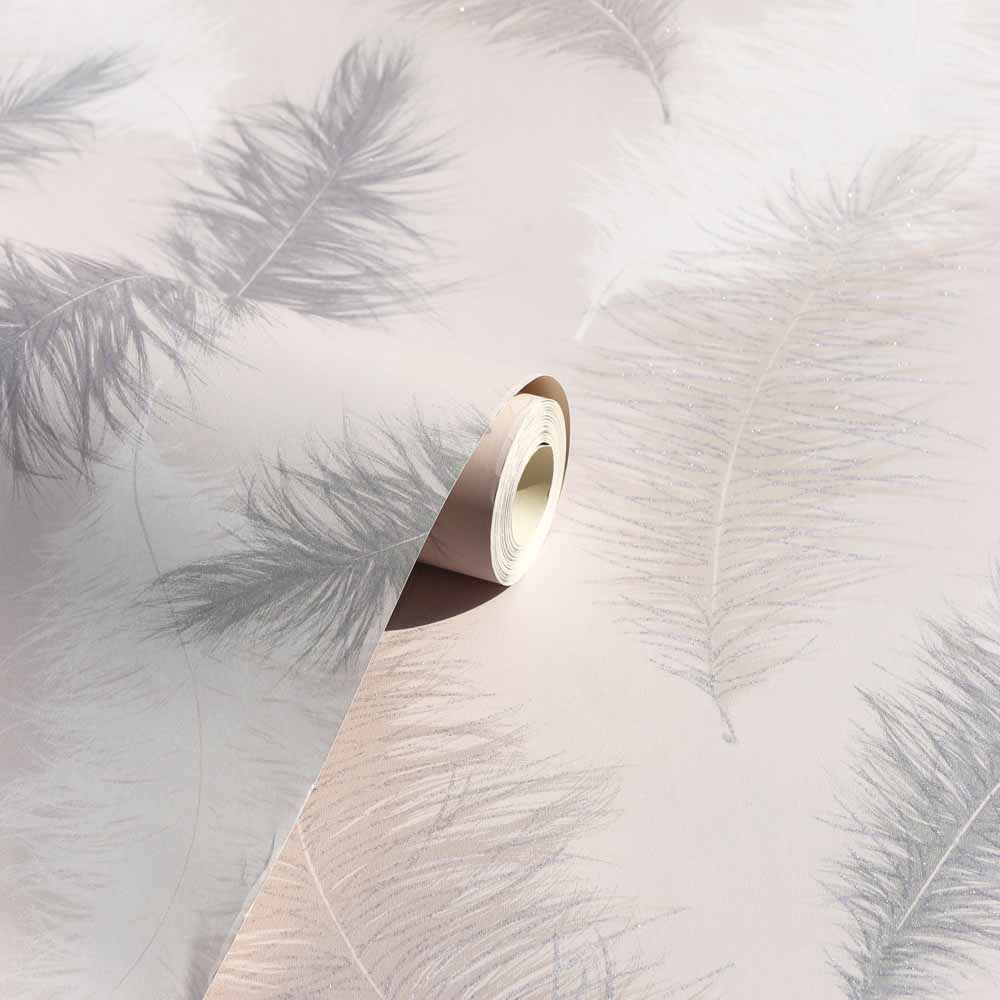 In the softest shade of blush pink, this fashionable feather design wallpaper is a beautiful choice for a room that's both elegant and on-trend. It contrasts a matt background with subtly sparkling gel effect feathers for a touch of luxury. A large-scale print, it will add impact and accentuate the sense of space in your room. Whether your home is contemporary or classic in style, this paper will create a stunning feature wall, in a bedroom or living room. Suitable for most rooms except high moisture environments, like bathrooms. Paste the Paper, Spongeable, Design Match: Off set 32cm, Design Repeat: 64cm, Roll Length: 10m, Roll Width 52cm