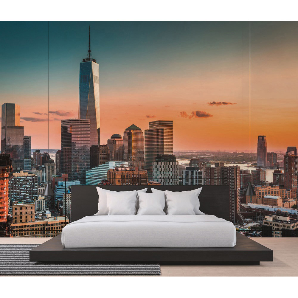 The iconic skyline of New York City at sunset, with the towering One World Trade Centre rising above the cityscape in dramatic fashion, offers a sense of both urban energy and calm reflection. Ideal for those who love the vibrancy of city life, this mural will bring a dynamic, metropolitan atmosphere to any space, making it perfect for offices, living rooms, or creative space that seek to inspire ambition and awe. Suitable for Living Rooms, Bedrooms, Hallways and Offices.