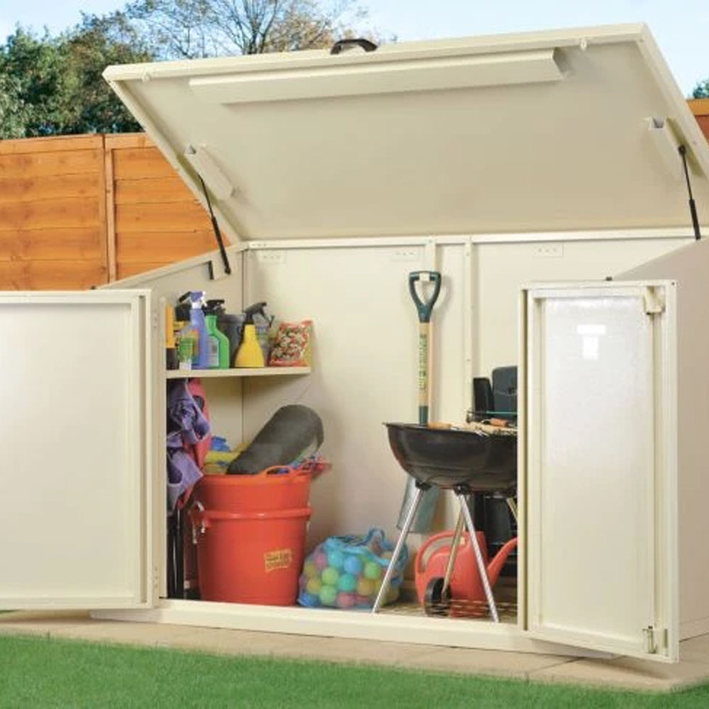 The Asgard Access is a 100% British-made, all-metal secure outdoor shed, providing safe and secure storage for all types of equipment. Featuring level 8-rated, keyed alike padlocks, surrounded by stainless steel shrouds, and featuring stainless steel locking points, this shed provides the maximum resistance to attack. This all-metal shed offers superior, professional-level security. It is the ideal (one-stop) secure store for all your tools and equipment. The Access shed is built from our thick, galvanised (weatherproof) steel panels (with reinforced stainless-steel components) and features an integral, full metal floor and convenient large double door access with a hinged lift-up, gas-assist lid, for maximum access to your equipment (ideal for large items). This fully ventilated shed has been designed to minimise condensation thanks to the integral ventilation system, helping to maintain internal air flow while remaining locked and secure. The Access is the ideal long term storage unit, keeping your equipment safe and dry in or out of the season.