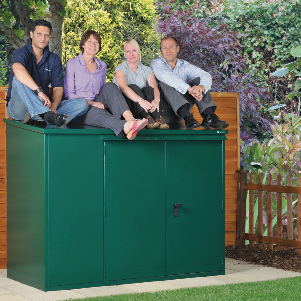 The Asgard Annexe is a 100% British-made, Secured By Design, Locksmith Approved and Insurance Approved (Police Preferred Specification) secure bike shed, providing secure storage for all of your bikes and equipment (up to 3 bikes). Featuring amazing, theft-resistant, pick and drill-resistant locks, reinforced doors, stainless steel (welded on) hinges and heavy duty panels, this approved bike shed offers superior, professional-level security and is the ideal (one-stop) secure store for all bike equipment. The Annexe shed is constructed from our thick, galvanised (weatherproof) steel panels and features an integral metal floor and convenient large double door access (which you can hand for Left or Right opening). It includes a rain guard above the door to keep the drips off your feet. Internal fixings and a five-point deadbolt locking system add even more security and peace of mind. This fully ventilated bike storage shed has been designed to minimise condensation thanks to the integral ventilation system, helping to maintain internal air flow while remaining secure.