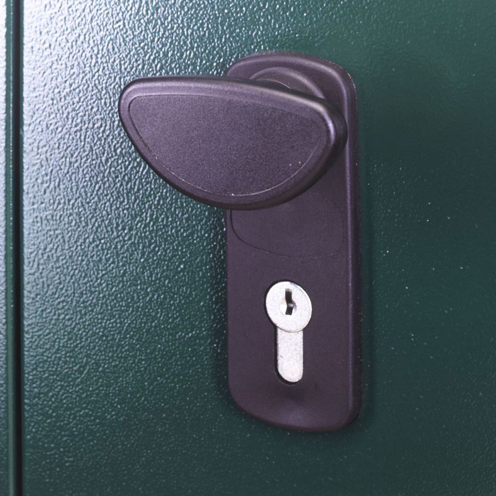 The 5 x 14 Asgard Centurion Garden Shed is a 100% British-made, Secured by Design (Police Preferred Specification), Locksmith Approved and Insurance Approved secure, multi-purpose shed, providing exceptionally secure storage for all of your garden tools, bikes, and equipment. Featuring pick and drill resistant locks, 5-point locking system (including deadbolts), with reinforced doors, stainless steel hinges, and heavy duty all steel panels, this fully approved large garden shed offers superior, professional, level security and is the ideal (one-stop) secure store for all of your tools, bikes and gardening equipment. The Centurion is constructed from the thick, galvanised (weatherproof) steel panels and features an integral metal floor and convenient, large double door. This fully ventilated storage shed has been designed to minimise condensation thanks to the integral ventilation system, helping to maintain internal air flow, while remaining secure. The Centurion will keep your tools and equipment not just safe but also dry. Listing is for the UNIT only. Accessories shown are for illustration purposes only. Base size recommended is 1730mm x 4940mm - (Internal Measurements are 1980mm apex / 1820mm eaves x 4314mm d x 1460mm w) - Must sit on concrete, Tarmac or Concrete - hardcore, soil, grass or eco bases NOT suitable. Colour GREY