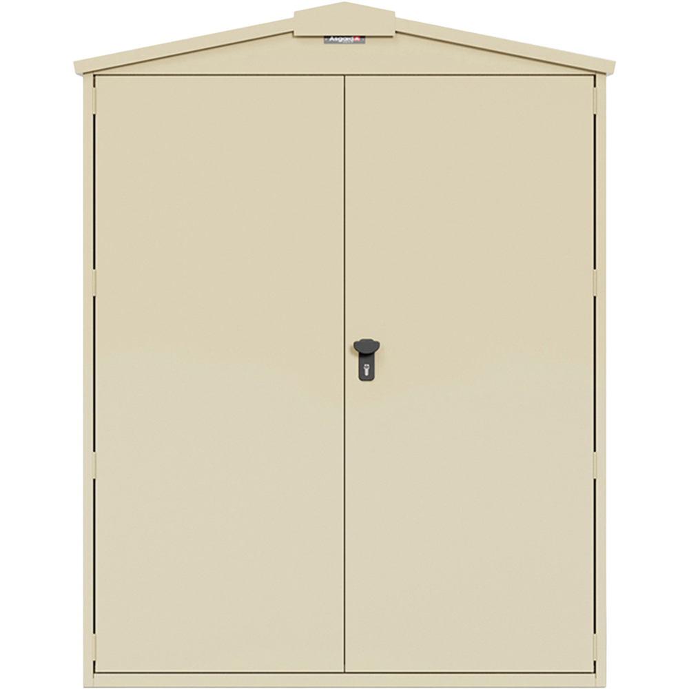 The 5 x 18 Asgard Centurion Garden Shed is a 100% British-made, Secured by Design (Police Preferred Specification), Locksmith Approved and Insurance Approved secure, multi-purpose shed, providing exceptionally secure storage for all of your garden tools, bikes, and equipment. Featuring pick and drill resistant locks, 5-point locking system (including deadbolts), with reinforced doors, stainless steel hinges, and heavy duty all steel panels, this fully approved extra-large garden shed offers superior, professional, level security and is the ideal (one-stop) secure store for all of your tools, bikes and gardening equipment. The Centurion is constructed from the thick, galvanised (weatherproof) steel panels and features an integral metal floor and convenient, large double door. This fully ventilated storage shed has been designed to minimise condensation thanks to the integral ventilation system, helping to maintain internal air flow, while remaining secure. The Centurion will keep your tools and equipment not just safe but also dry. Listing is for the UNIT only. Accessories shown are for illustration purposes only. Base size recommended is 1730mm x 5974mm - (Internal Measurements are 1950mm apex / 1760mm eaves x 5406mm d x 1460mm w) - Must sit on concrete, Tarmac or Concrete - hardcore, soil, grass or eco bases NOT suitable. Colour IVORY