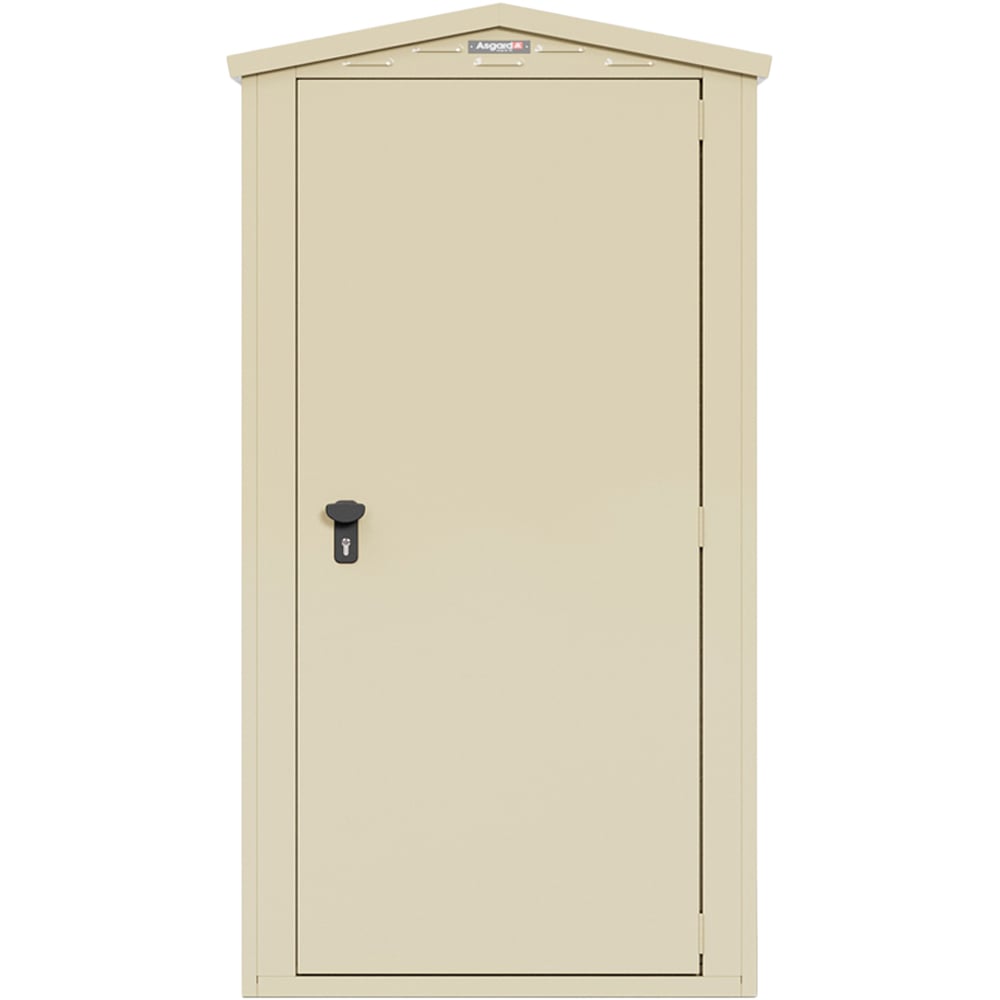 The Asgard Sentry E-Bike storage shed is a 100% British-made, all-metal, secure bike shed, providing secure bike storage for up to two bikes and all manner of cycling equipment. Featuring a multipoint pick and drill resistant locking system, this compact all-metal bike locker offers superior, professional-level bike security and is the ideal secure bike store for all types of mountain bikes, road bikes, and general cycling equipment. The Sentry locker is built from our thick, galvanised (weatherproof) steel panels and features an integral metal floor, an electrical mounting point for adding power, and convenient large single door access. The roof is sloped, allowing rain to drain away into a guttering system (not supplied). This fully ventilated bike shed has been designed to minimise condensation thanks to the integral ventilation system helping to maintain internal air flow, while remaining secure. The unit comes with a hanging bike rack.