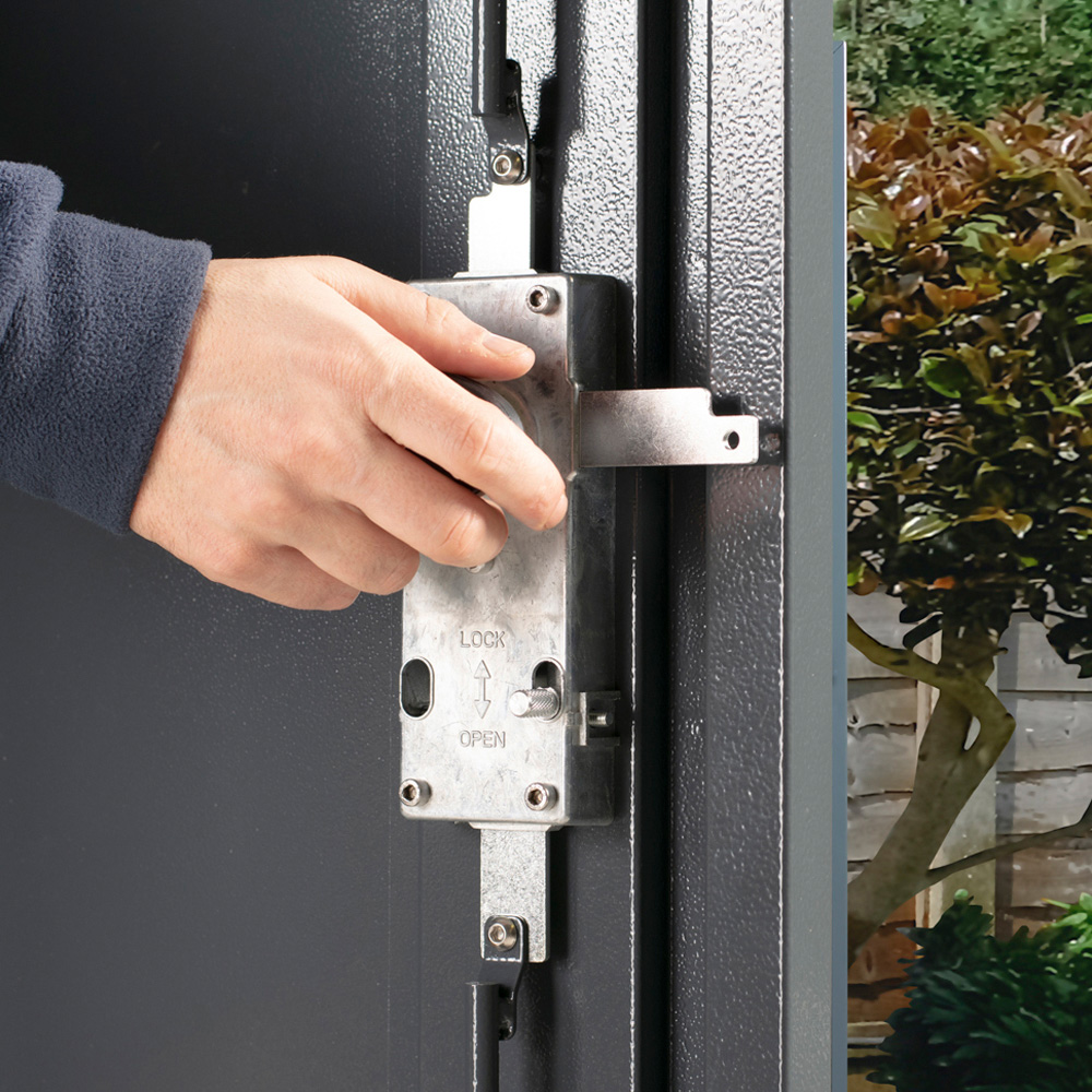 The Asgard Sentry garden shed is a 100% British-made, all-metal garden/tool shed, providing secure storage for all manner of garden tools and equipment. Featuring multi-point pick and drill resistant locking, this compact all-metal garden storage locker offers superior, professional, level security for your garden equipment and tools. The Sentry all metal shed is built from our thick, galvanised (weatherproof) steel panels and features an integral metal floor, with a small over all footprint, this apex roof garden shed is ideal for smaller garden areas that require a lot of storage space. This fully ventilated shed has been design to minimise condensation thanks to the integral ventilation system helping to maintain internal air flow. The pent roof is sloped, allowing rain to drain away into a guttering system (not supplied).