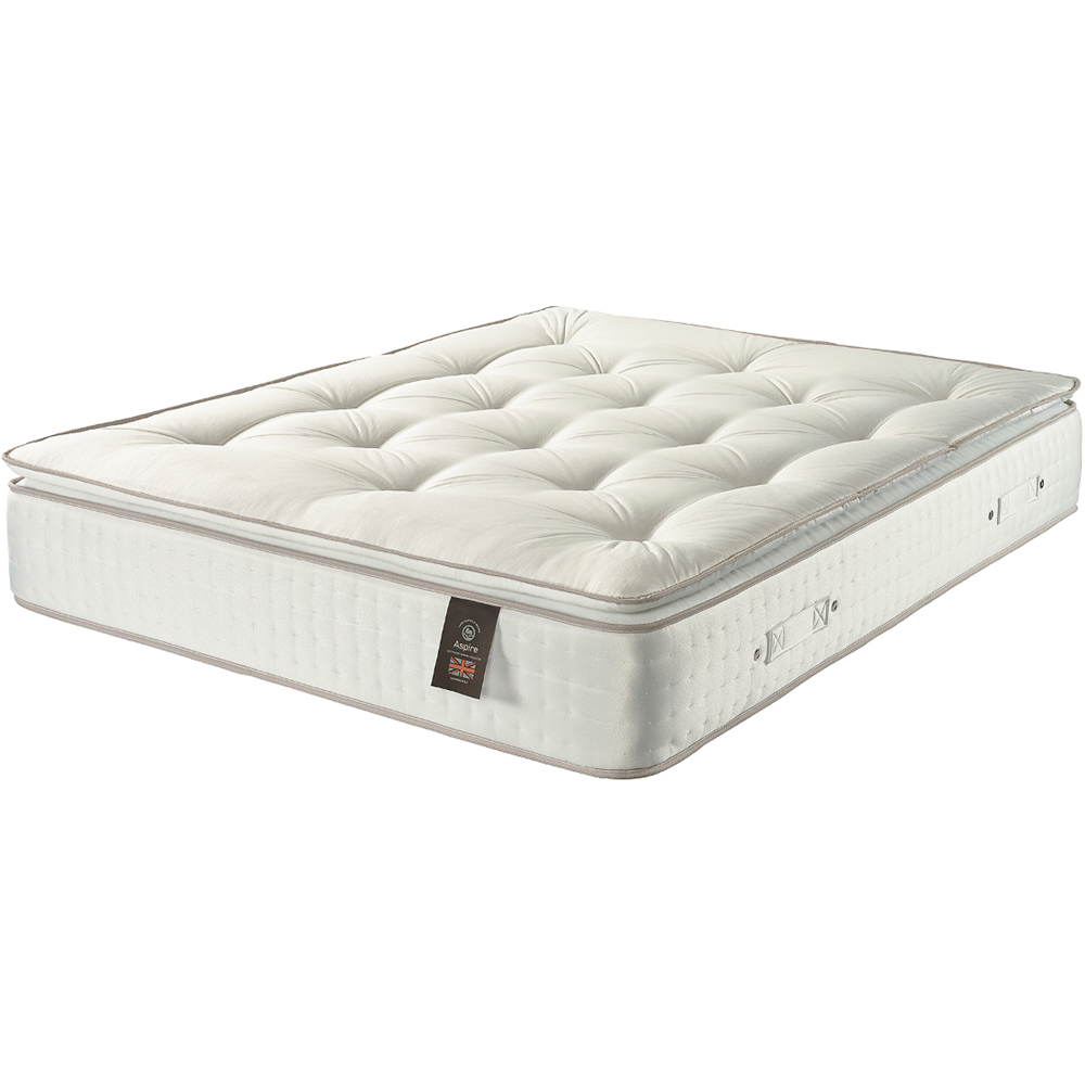 Luxury Pillowtop Mattress with Superior Craftsmanship and Comfort Experience the ultimate in sleep luxury with the Aspire 5000 Pocket Wool, Cashmere & Silk Pillowtop Mattress, expertly crafted to deliver premium comfort and unrivalled support. Made from the finest natural materials, this mattress is designed to ensure a restful and rejuvenating night's sleep every time. 5000 Pocket Spring System for Exceptional Support This mattress features an advanced 5000 pocket spring system that adapts to your body’s movements, offering personalised support: 1000 18cm pocket springs provide essential orthopaedic support, helping to maintain correct spinal alignment and relieve pressure points. 4000 micro springs work in harmony to create a dual suspension system, adding a layer of responsive comfort that adjusts to your body's shape for superior pressure relief. Luxurious Layers of Wool, Cashmere, and Silk The Aspire 5000 mattress is finished with sumptuous layers of wool, cashmere, and silk, offering a soft and breathable sleeping surface. These natural fibres not only enhance comfort but also provide excellent temperature regulation, ensuring you stay cool in summer and warm in winter for year-round comfort. Medium Comfort Rating – Ideal for All Sleepers With a medium comfort rating, this mattress strikes the perfect balance between softness and support, making it suitable for a wide range of sleepers. Whether you prefer to sleep on your back, side, or stomach, this mattress adapts to your needs, providing optimal comfort in any sleeping position. Handcrafted for Durability and Long-Lasting Comfort Handcrafted with meticulous attention to detail, the Aspire 5000 Pocket Pillowtop Mattress is built to last. Its durable design, combined with premium natural materials, ensures you enjoy the benefits of luxurious comfort and support for years to come. Benefits of the Aspire 5000 Pocket Wool, Cashmere & Silk Pillowtop Mattress: 5000 individually nested pocket springs for tailored support and comfort Orthopaedic support from 1000 18cm pocket springs for improved spinal alignment 4000 micro springs for enhanced responsiveness and pressure relief Layers of wool, cashmere, and silk for plush comfort and natural temperature regulation Medium comfort rating, ideal for most sleep preferences Handcrafted for durability and long-lasting performance Upgrade your sleep experience with the Aspire 5000 Pocket Pillowtop Mattress and enjoy the perfect blend of luxury, support, and temperature-regulating comfort. Designed for those who value quality and a rejuvenating night’s sleep, this mattress delivers an exceptional sleep experience every night. Order your premium mattress today and transform your sleep with the Aspire 5000!