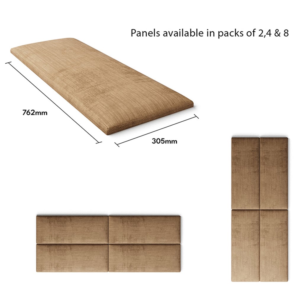 Elevate your decor with the Aspire EasyMount Firenze Velour Upholstered Wall-Mounted Headboard Panels. This range of wall panels is a fantastic way to instantly transform your bedroom, living room, dining room, or any other reception room in your house or office. With a simple DIY attachment method, these panels can be installed in minutes with no tools required. However, a spirit level is advised to get a neat finish; just peel off the hook and loop fastener backing, place it on your wall, and the super strong pre-attached adhesive does all the heavy lifting. Versatile and stylish, the wall panels are mountable in horizontal or vertical configurations, and the only limit will be the size of your wall. Mounting a few panels behind your bed will give you a traditional headboard without the screws and bolts or fiddley measuring required for traditional wall-mounted models. Also, it will provide a more sturdy alternative to slatted or floor-standing headboards. Simply add more panels to create a truly luxurious feature wall. Plus, they feature a 35mm thick layer of luxurious foam padding to ensure a comfortable feel. Each panel is upholstered by hand by an expert manufacturing team, so you can rest assured you are getting a quality UK-made product. Individual panel dimensions: 762 x 305mm. Pack of four. Colour: Champagne.