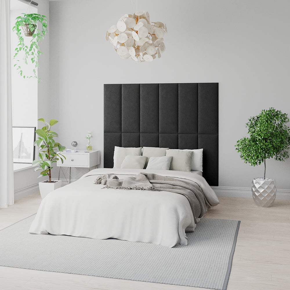 Elevate your decor with the Aspire EasyMount Slate Plush Velvet Upholstered Wall-Mounted Headboard Panels. This range of wall panels is a fantastic way to instantly transform your bedroom, living room, dining room, or any other reception room in your house or office. With a simple DIY attachment method, these panels can be installed in minutes with no tools required. However, a spirit level is advised to get a neat finish; just peel off the hook and loop fastener backing, place it on your wall, and the super strong pre-attached adhesive does all the heavy lifting. Versatile and stylish, the wall panels are mountable in horizontal or vertical configurations, and the only limit will be the size of your wall. Mounting a few panels behind your bed will give you a traditional headboard without the screws and bolts or fiddley measuring required for traditional wall-mounted models. Also, it will provide a more sturdy alternative to slatted or floor-standing headboards. Simply add more panels to create a truly luxurious feature wall. Plus, they feature a 35mm thick layer of luxurious foam padding to ensure a comfortable feel. Each panel is upholstered by hand by an expert manufacturing team, so you can rest assured you are getting a quality UK-made product. Individual panel dimensions: 762 x 305mm. Pack of 2.