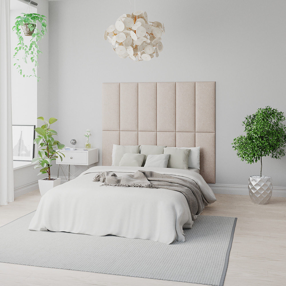 Elevate your decor with the Aspire EasyMount Natural Saxon Twill Upholstered Wall-Mounted Headboard Panels. This range of wall panels is a fantastic way to instantly transform your bedroom, living room, dining room, or any other reception room in your house or office. With a simple DIY attachment method, these panels can be installed in minutes with no tools required. However, a spirit level is advised to get a neat finish; just peel off the hook and loop fastener backing, place it on your wall, and the super strong pre-attached adhesive does all the heavy lifting. Versatile and stylish, the wall panels are mountable in horizontal or vertical configurations, and the only limit will be the size of your wall. Mounting a few panels behind your bed will give you a traditional headboard without the screws and bolts or fiddley measuring required for traditional wall-mounted models. Also, it will provide a more sturdy alternative to slatted or floor-standing headboards. Simply add more panels to create a truly luxurious feature wall. Plus, they feature a 35mm thick layer of luxurious foam padding to ensure a comfortable feel. Each panel is upholstered by hand by an expert manufacturing team, so you can rest assured you are getting a quality UK-made product. Individual panel dimensions: 762 x 305mm. Pack of eight.