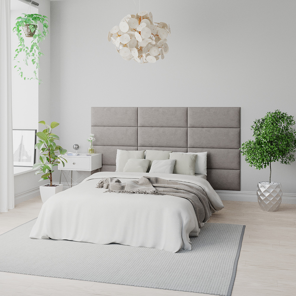 Elevate your decor with the Aspire EasyMount Slate Plush Velvet Upholstered Wall-Mounted Headboard Panels. This range of wall panels is a fantastic way to instantly transform your bedroom, living room, dining room, or any other reception room in your house or office. With a simple DIY attachment method, these panels can be installed in minutes with no tools required. However, a spirit level is advised to get a neat finish; just peel off the hook and loop fastener backing, place it on your wall, and the super strong pre-attached adhesive does all the heavy lifting. Versatile and stylish, the wall panels are mountable in horizontal or vertical configurations, and the only limit will be the size of your wall. Mounting a few panels behind your bed will give you a traditional headboard without the screws and bolts or fiddley measuring required for traditional wall-mounted models. Also, it will provide a more sturdy alternative to slatted or floor-standing headboards. Simply add more panels to create a truly luxurious feature wall. Plus, they feature a 35mm thick layer of luxurious foam padding to ensure a comfortable feel. Each panel is upholstered by hand by an expert manufacturing team, so you can rest assured you are getting a quality UK-made product. Individual panel dimensions: 762 x 305mm. Pack of 2.