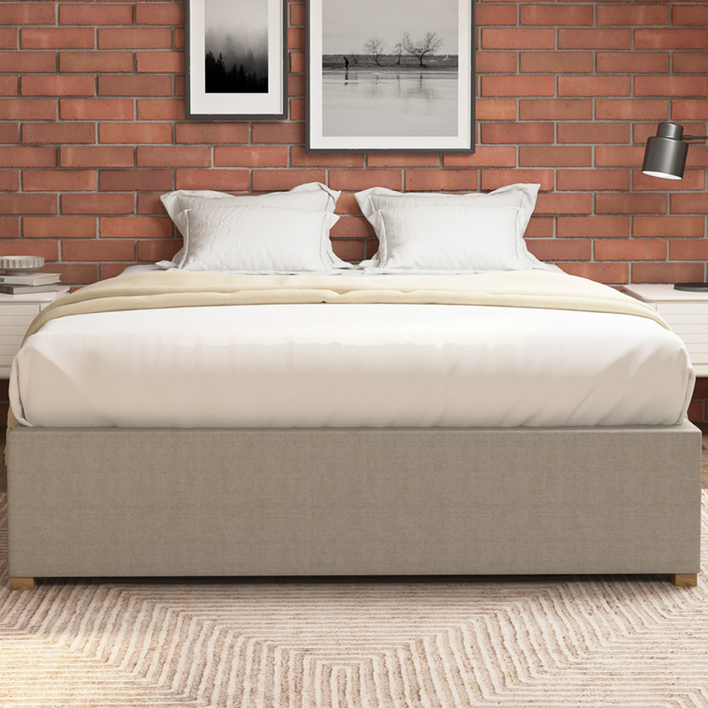 Elevate your living space decor with this Aspire Furniture King Size Grey Eire Linen Platform Ottoman Bed. Carefully designed and crafted, this king-size bed features chunky upholstered panels for long-lasting durability. With ample storage space to offer, it's perfect for smaller homes and bedrooms with limited space. The high-quality gas pistons support the Ottoman mechanism, providing easy, hands-free access to your stored items. Once the top is elevated, the bed will hold its position. While the fabric base will keep all your things protected. Comfortable and stylish, it comes in a sumptuous grey and flaunts a loft-style headboard less design so you can enhance your bedroom decor effortlessly.