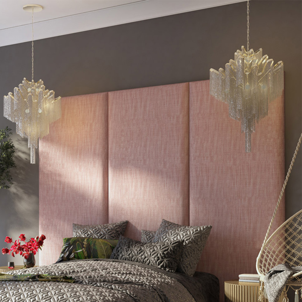 Redefine your space with the Aspire Furniture Llewelyn-Bowen Luxury Tea Rose Pure Pastel Cotton Wall Mounted Headboard 90cm. This versatile panel can be mounted horizontally or vertically, making it suitable for any wall size. Use a few panels behind your bed for a stunning headboard, or add more to create a luxurious feature wall. With a 3.5cm thick layer of padding, the panel ensures both style and comfort. Handcrafted from sustainably sourced wood and upholstered by experts in Leeds, the panel is a quality UK-made product. The panels come supplied with a custom-designed mounting system, which includes wooden hangers and also screws and wall plugs to attach the hanger to the wall. Once mounted, the panels simply hang onto the wall, making for a simple installation for anyone with a basic DIY competence. Individual panel dimensions are 8 x 90 x 210cm, and it is sold individually as a single panel to make it easy for you to purchase exactly the right amount for your project.