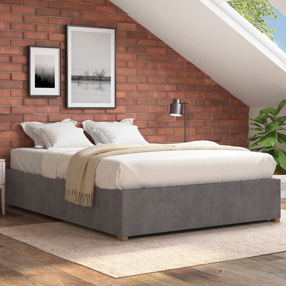 Enhance your bedroom decor with the functional and stylish Aspire Furniture Small Double Steel Plush Platform Ottoman Bed. This handcrafted ottoman storage bed comes with a loft-style low headboard design. It provides lasting comfort and a striking focal point for any bedroom. The ample storage space makes this bed a lifesaver for smaller bedrooms or houses with limited storage. The platform ottoman bed features chunky upholstered panels for long-lasting durability. It also uses quality sprung slats to make the bed, which improves comfort and mattress lifespan. The bed uses high-quality gas pistons to support the ottoman mechanism. Once the bed's top is elevated, it will hold its position. This allows for easy, hands-free access to your stored items. The mechanism can lift a mattress weighing up to 60kg. The items will be protected by a fabric base attached to the underside of the bed. It also has a headboard less design, meaning it will look great with any of the wall-mounted headboard panel options or used alongside freestanding oversized wing headboard. It is finished with hand-turned, hardwood feet and handcrafted in the UK.