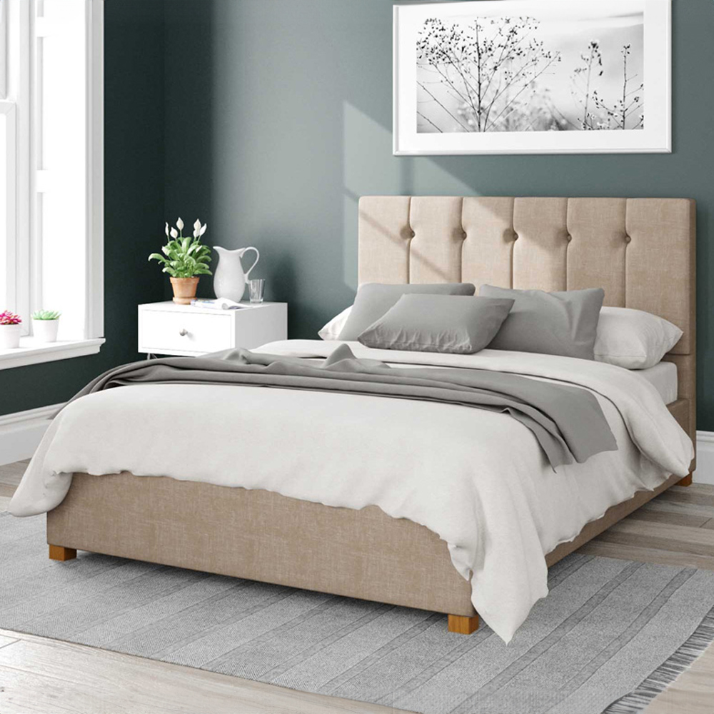 Say goodbye to clutter and introduce elegance to your space with this Aspire Hepburn Super King Ebony Malham Weave Ottoman Bed. This stylish bed ensures quality and has no shortcuts in the making; therefore, it is designed and handcrafted down to the last stitch. The frame is crafted using chunky, upholstered panels that will endure the test of time. Also, the excellent sprung slats with a multi-layer construction ensure durability and comfort. Made with elegance, the bed is finished with hand-carved, hardwood feet and comes with a tasteful, upholstered headboard. The headboard features a deep padding for no compromises in comfort while sitting in bed. Plus, the fabric buttons and vertical line design create a clean and sophisticated look. Ideal for both contemporary and traditional interior decor, this bed is perfect for a range of interiors. For added convenience, it also provides a solution to your storage problems. This ottoman bed reveals a spacious storage area underneath, meaning you can store items within the bed frame without taking up extra floor space. To protect items stored and ensure that they are not in contact with the floor, it comes with an attached fabric base to the underside of the bed. Easy to use, the simple-lift mechanism powered by gas pistons enables access to the storage with minimal effort. Sturdy and solid, this bed is capable of lifting a mattress with a weight of up to 60kg. Moreover, the pistons hold the bed in place when it is raised for hands-free access. This ottoman bed frame is manufactured in the UK.