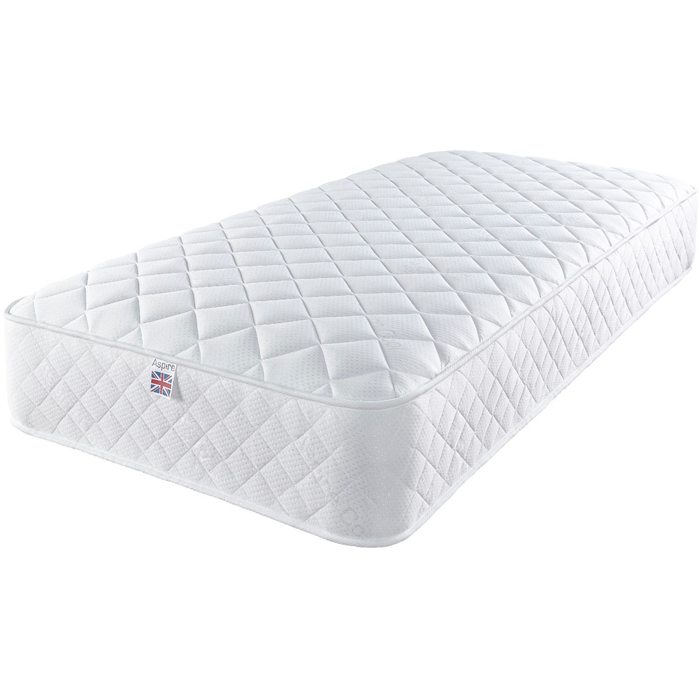 Add a touch of comfort to your bed with this Aspire Eco Foam Free Mattress. This small single size mattress comes with a premium spring system with 19.5cm deep Bonnell sprung for even support while sleeping and medium-soft firmness. With the AC cool sleeping surface, overheating in bed is eliminated, which could cause loss of vital sleep and lead to poor sleep quality. It has been designed to actively support the body’s key pressure points. Also, it features ten times more breathable fabric than the standard mattresses. This made-in-UK mattress can easily fit in your budget and in your bedroom as well. The mattress is vacuum packed and rolled for easy shipping, as it becomes easy to transport to tricky attic rooms or rooms with narrow doorways. Also, it matches all UK fire regulations with the 14-day hassle-free return policy.