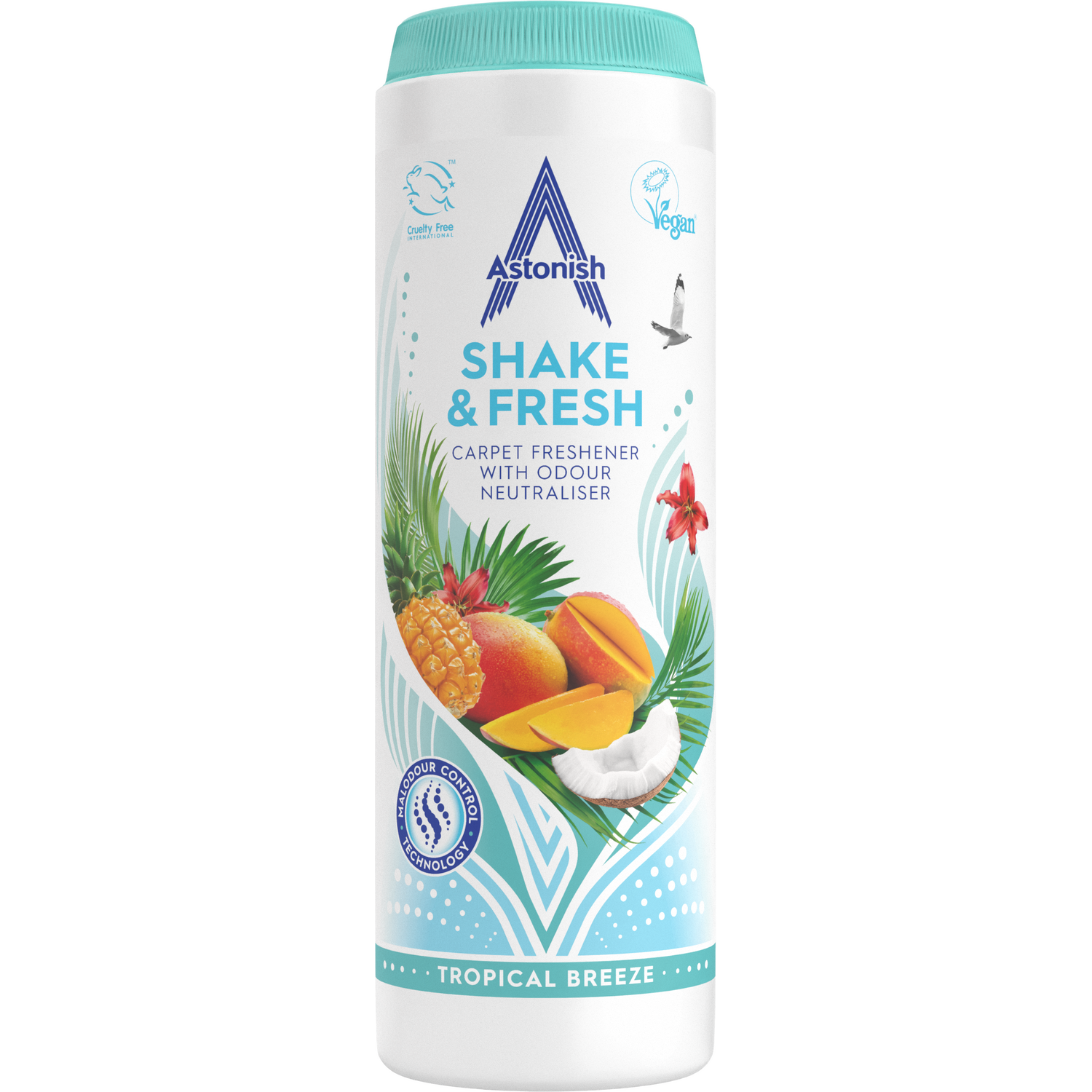 Freshen up your flooring with Astonish Shake and Fresh Carpet Freshener. The ultimate solution for maintaining an inviting home environment, say goodbye to stale odours, lingering pet smells, and musty scents that can accumulate in your carpets over time. With Malodour Control Technology to combat deep-down odours, it leaves your carpets fresh and fragrant.