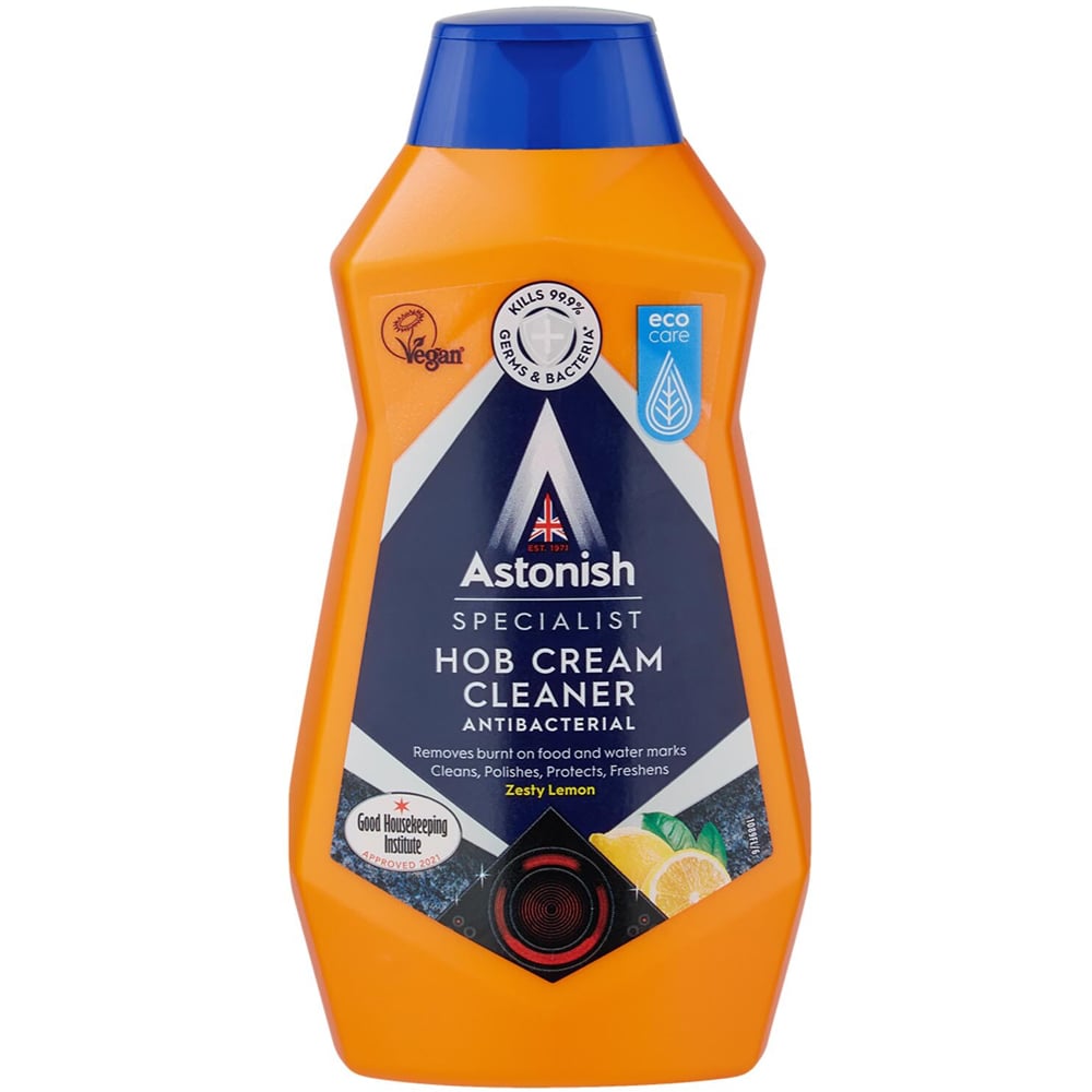 Cut through tough kitchen grimes with the Astonish Specialist Zesty Lemon Antibacterial Hob Cream Cleaner 500ml. Specially formulated for the hardest-working areas in the home, this powerful cleaner removes everyday spills and dried-on food from your hob with ease. The antibacterial cream formula not only leaves the surface hygienically clean but also polishes it to a sparkling shine while leaving a protective coating to help guard against future messes. It features a zesty lemon scent. It is ideal for use on ceramic, glass induction, and halogen hobs and microwaves.