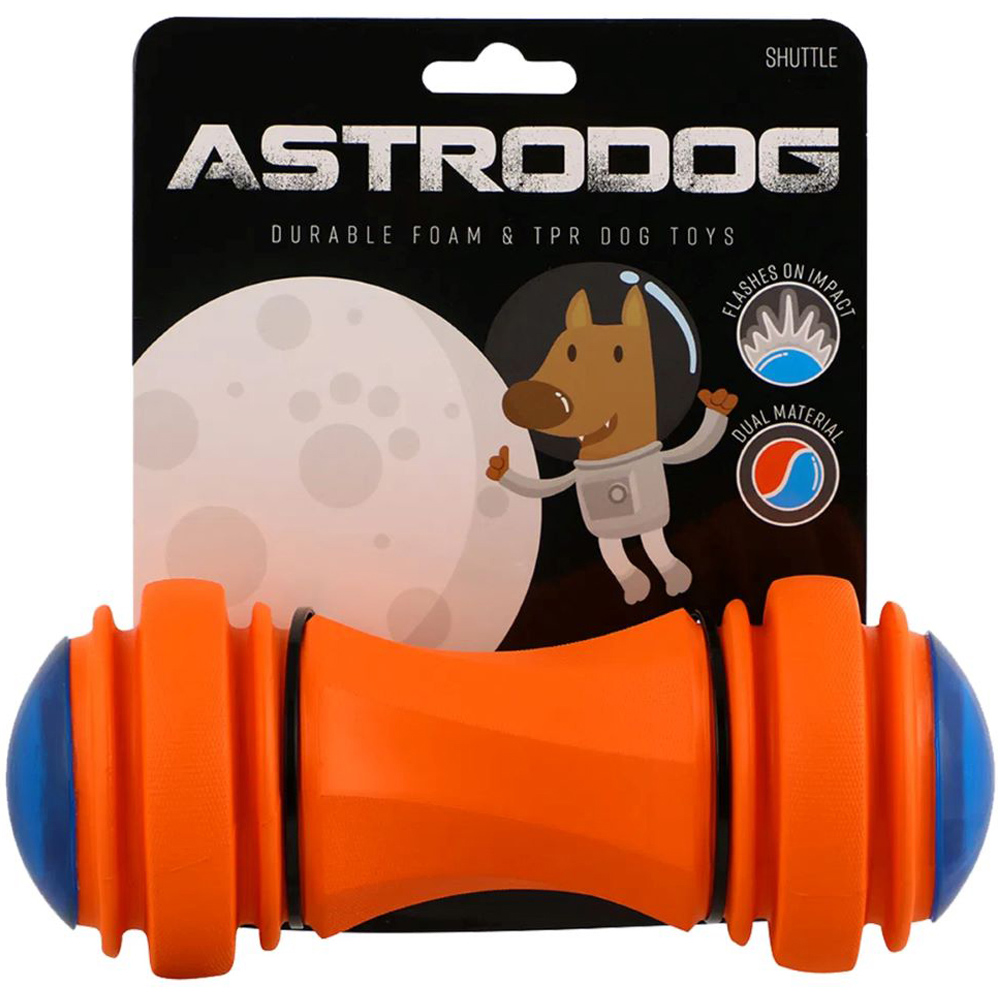 Make playtime an out of this world experience for your furry friend with astrodog! Made using a special foam material that is light to carry and kind on teeth, its perfect for throw and fetch games. additionally, the blue TPR sections increase the durability and longevity of the toy, allowing for more playtimes and more fun! The impact activated flashing light will further entice your dog, especially in low light conditions.