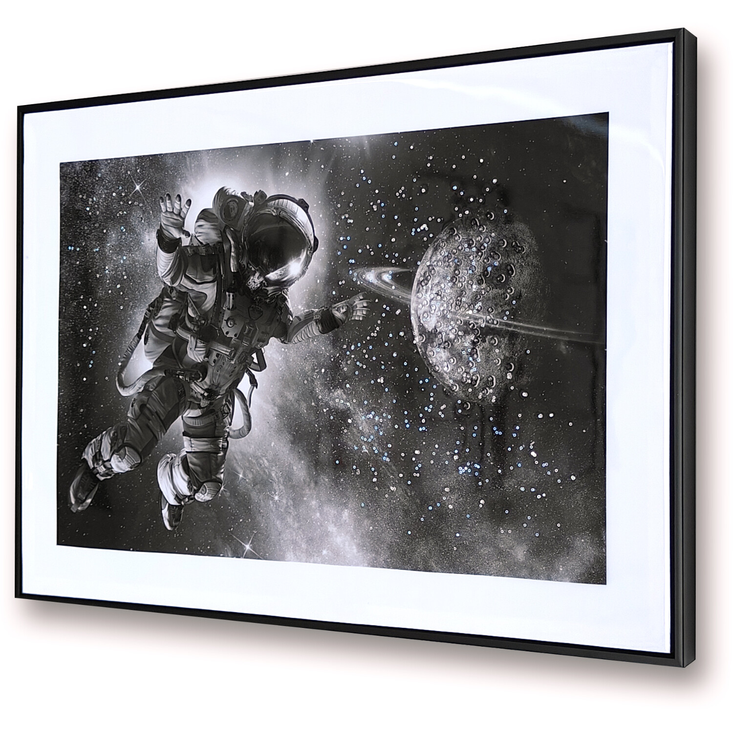Add an otherworldly charm to your space with this Astronaut Framed Wall Art. Featuring a beautiful scene which shows an astronaut floating in the vast expanse of space while looking down at a planet, this artwork is sure to turn heads wherever it is placed. Ideal for any room, it makes a standout piece that will instantly elevate your decor.