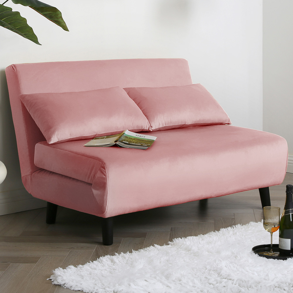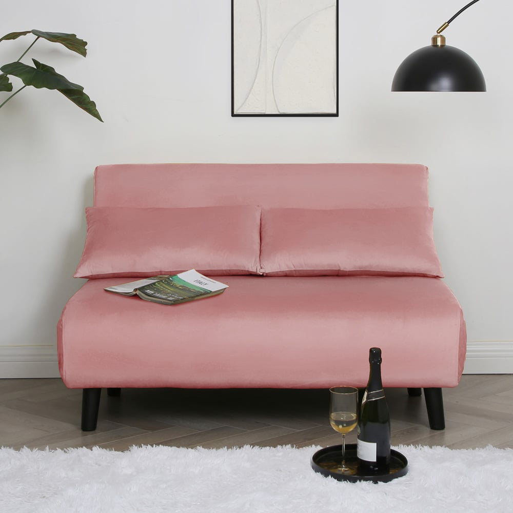 Change the way you lounge and sleep with the Aurora 2 Seater Pink Velvet Sofa Bed. This double sofa bed brings a pop of colour and sophistication to any room, making it an inviting addition to your living space. Made with soft plush velvet fabric, it offers a luxurious feel, while its foam-filled, spring-supported cushions provide cosy comfort for both sitting and sleeping. Designed for effortless use, it quickly transforms from a cosy chair into a comfortable bed in just seconds with a simple fold-out mechanism. No complicated setup is needed as it arrives fully assembled, so you simply attach the legs, and it’s ready to go.
