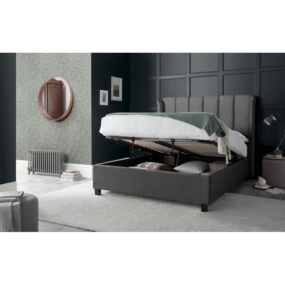 Aurora Double Grey Velvet Ottoman Storage Bed