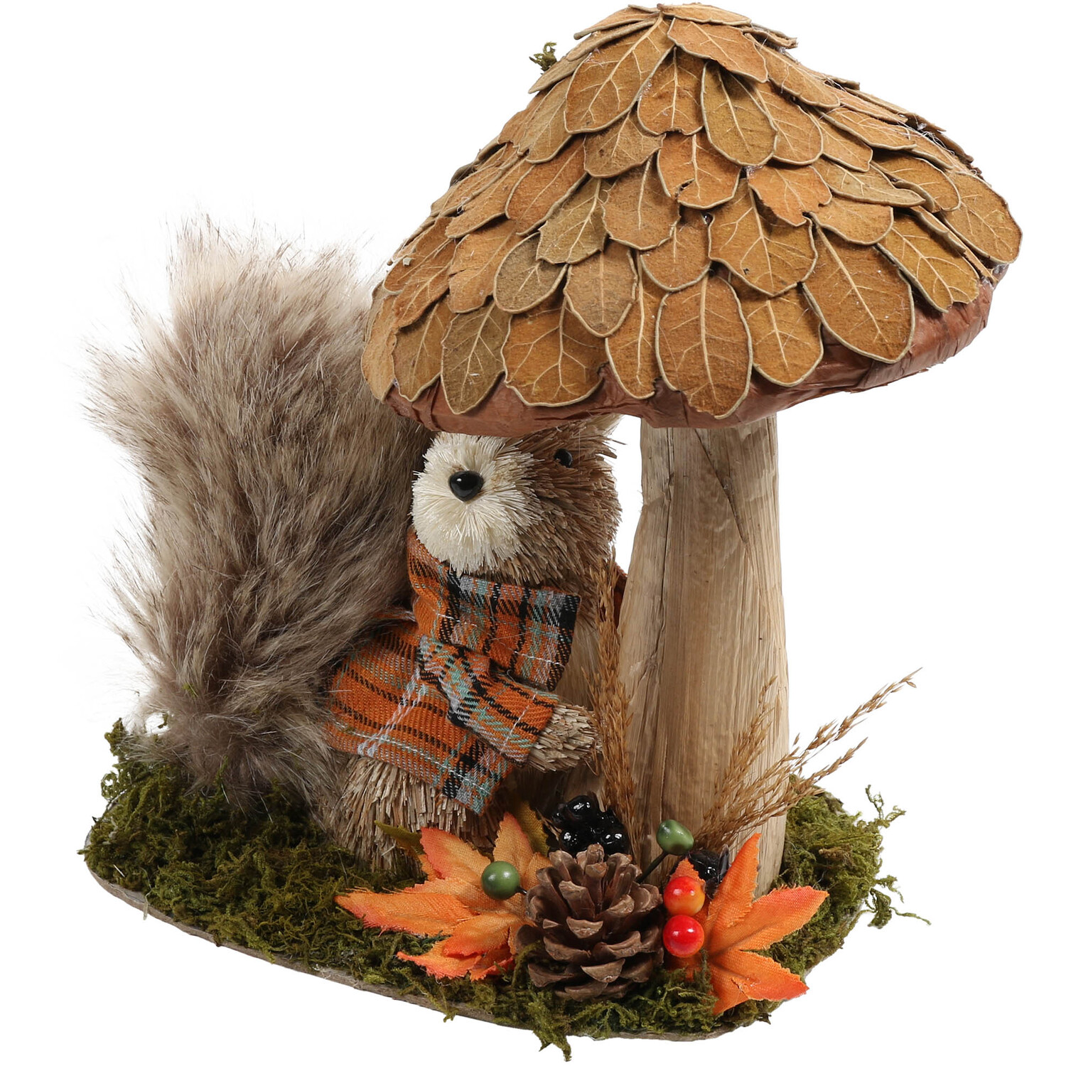 Adding this Autumn Squirrel and Mushroom to your home decor will make your home feel adorable and suitably autumnal. The ornament features a cute squirrel in a plaid jacket beneath a large rustic mushroom on mossy ground. It's full of gorgeous tones of orange and brown to suit your autumnal stylings and will look fabulous on display on accent tables, shelves, and mantelpieces.