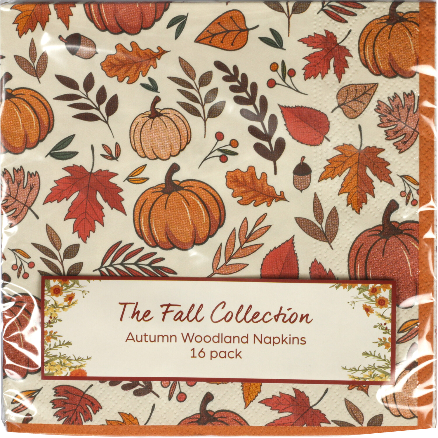Bring the cosy charm of autumn to your table with the Autumn Woodland Napkins. Featuring a delightful autumnal design with pumpkins, colourful leaves, foliage, and berries, these napkins are perfect for adding a seasonal touch to your dining experience. Whether you're hosting a dinner party or any fall-themed celebration, these napkins are a wonderful accessory for any autumn-themed event.