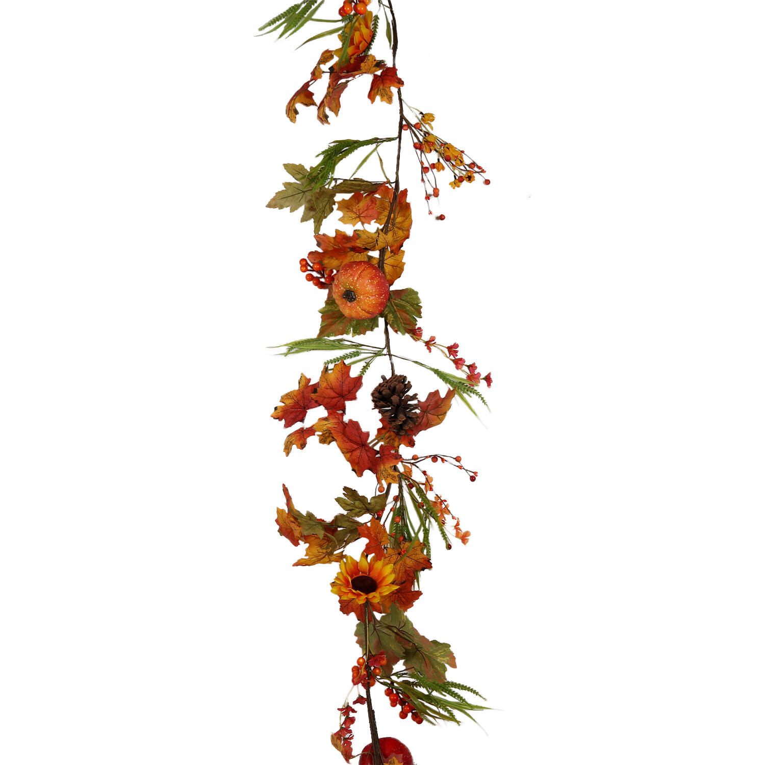 Give your house a warm and cosy feel this autumn with this Autumnal Floral Large Pumpkin Garland. This attractive garland has been beautifully crafted with faux leaves, flowers, pine cones and pumpkins, making it excellent for hanging on doors, walls, mantles, or as a table centrepiece. The warm, rich tones and vibrant green foliage give this charming garland a striking appearance that's guaranteed to help you welcome the arrival of autumn in style.