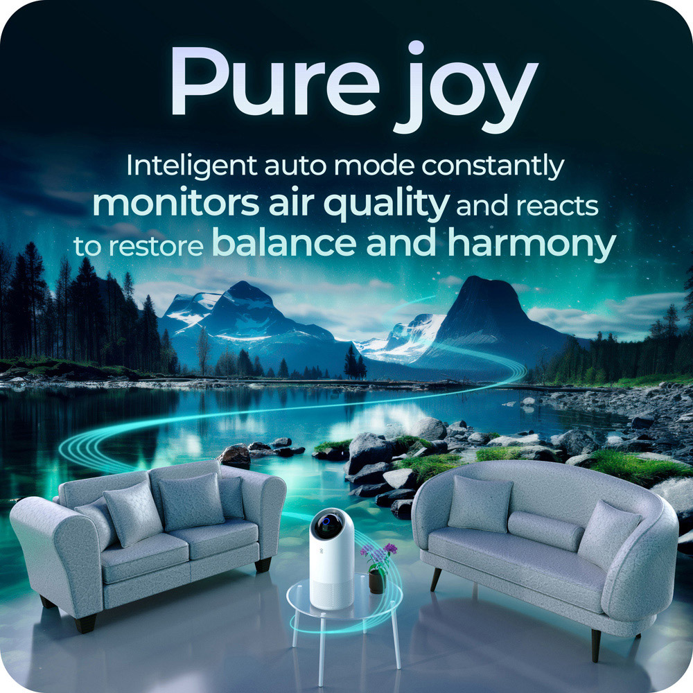 Take a breath of fresh air while relaxing indoors with the Avalla R-2000 Air Purifier with HEPA Filter. The near-silent brushless motor efficiently restores balance and harmony to your space. It is a 23W energy-efficient purifier that will provide clean and fresh air without negatively impacting your budget. It features a three-stage true HEPA filter that captures 99.97% harmful allergens, toxins, dust, pollen, smoke, VOCs, toxic gasses, pet dander and any particles down to 0.3 microns. It is a striking balance of form and function which creates a lasting impression on more than just the air quality. You can slide the dome to control air quality in large rooms, thanks to the 100m3/h CADR. It also features a ring light that reacts to changes in the air giving you visual feedback on your environment. The directional flow allows you to focus air anywhere for immediate and continuous results. High-density activated carbon efficiently captures unwanted odours, removing them from your environment.