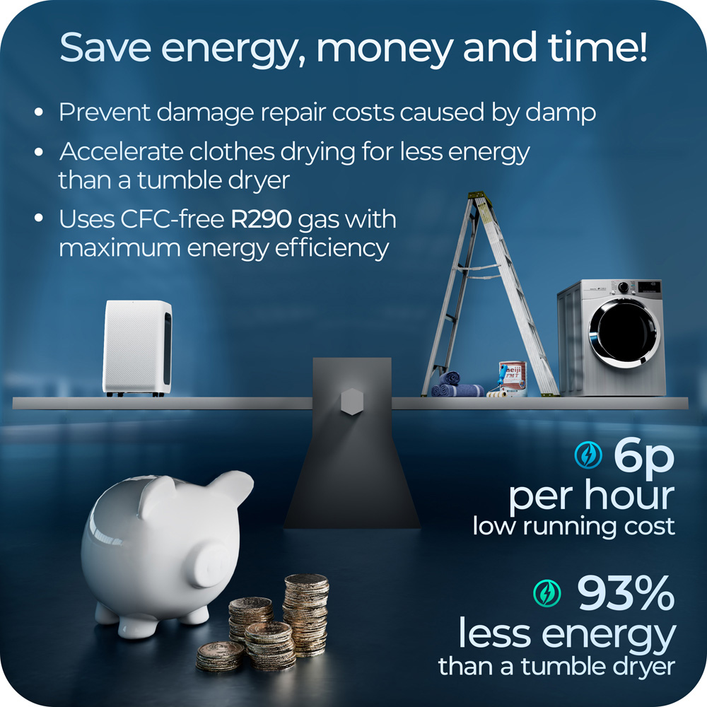 AVALLA FOR LIFE - With lifetime UK based customer support, over 100 years of industry expertise, and a 2 year warranty, Avalla are always here for you. We are proud to be helping rebuild natural habitats by planting a tree for every order placed and powering our services on 100% renewable energy. SAFE DRY TECHNOLOGY - The fast and safe way to dry laundry. Accelerate the natural drying cycle, avoid adding excess moisture to the air and harmful heat caused by tumble drying. Perfect for all types of clothing and fabrics. An impressive 16 litre per day capacity. SAVE ENERGY - SAVE MONEY - SAVE TIME - SAVE REPAIR BILLS - More efficient and more cost effective than a tumble dryer saving up to a massive 93% on average. Running costs as low as 6p per hour. SAVE THE PLANET with CFC free R290 Gas. SAVE time emptying the tank with continuous drainage function. DEFEAT THE DAMP – Create a healthy environment and protect against mould, mildew, damp, and condensation. By improving the indoor air quality, you can positively impact your health. Suitable for the whole house with coverage of 64m3 and massive 150m³/h throughput, you’ll rest easy knowing persistent damp is a thing of the past. SMARTER BY DESIGN – Efficiency is at the core of the 3 in 1 X-500, using just 0.24kW/h. Aero-Dynamic technology captures moisture at whisper quiet 32dB, which is 28% quieter than previous models. Operating down to 16°C with large 4.5L removable water tank plus 24hr timer, and clothes drying quick functions, this feature rich performer is useful all-year-round.