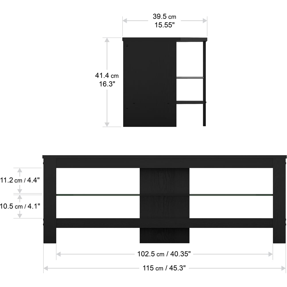 The Calibre is the perfect TV stand for TVs up to 55 inches and 40kg, its minimalist design makes it a great piece of furniture for any room setting. Designed to fit equally well flat against a wall or in the corner of the room, providing ample space for your TV and home entertainment equipment. Sturdy construction, finished in a naturally attractive black oak wood effect veneer with a toughened glass shelf which provides an elegant way to support your consoles and media players. Quick and easy to install with cable management panel to the rear which allows the use of AV equipment whilst still looking tidy. Please note: Maximum TV sizes are given as a recommendation only and do allow for some screen overhang, the exact dimensions of the TV’s pedestal/feet should be checked to ensure the desired fit prior to purchase.