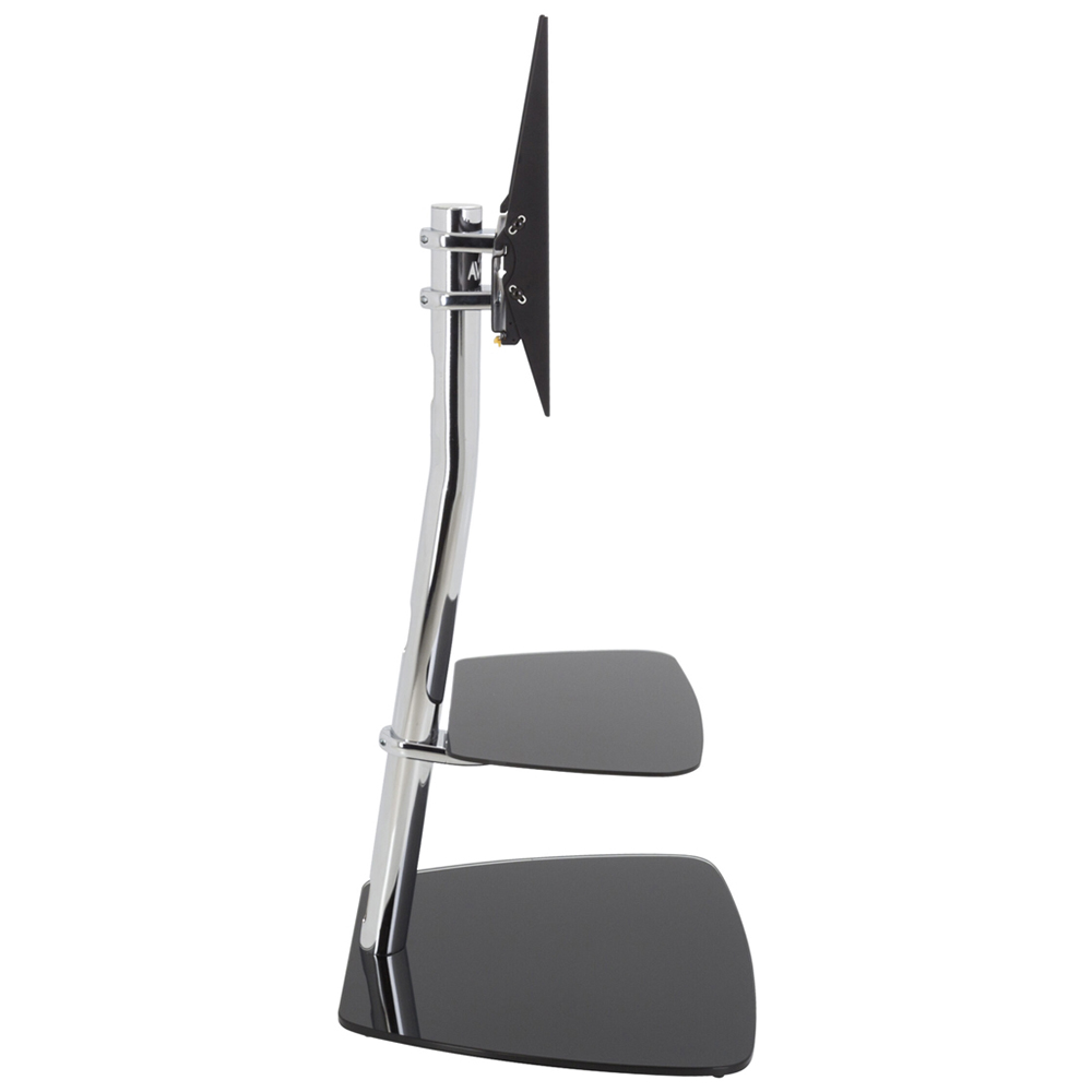 Make a stunning and practical addition to your space with the AVF Iseo Black Glass Pedestal TV Unit 60cm. It offers a unique swan neck design that ensures the perfect centre of gravity for your TV. This allows you to mount your TV at the ideal height without the need to attach it to a wall. The adjustable shelf can accommodate a variety of TV sizes, while the cable management column keeps cables neatly organised and out of sight. With secure AVF mounting technology, your TV is protected from accidental knocks or tip-overs. This TV unit supports TVs up to 55 inches and 30kg. Additionally, it tilts 15 degrees up and down for an enhanced viewing experience. VESA compatible from 100  x 100mm to 400 x 400mm.