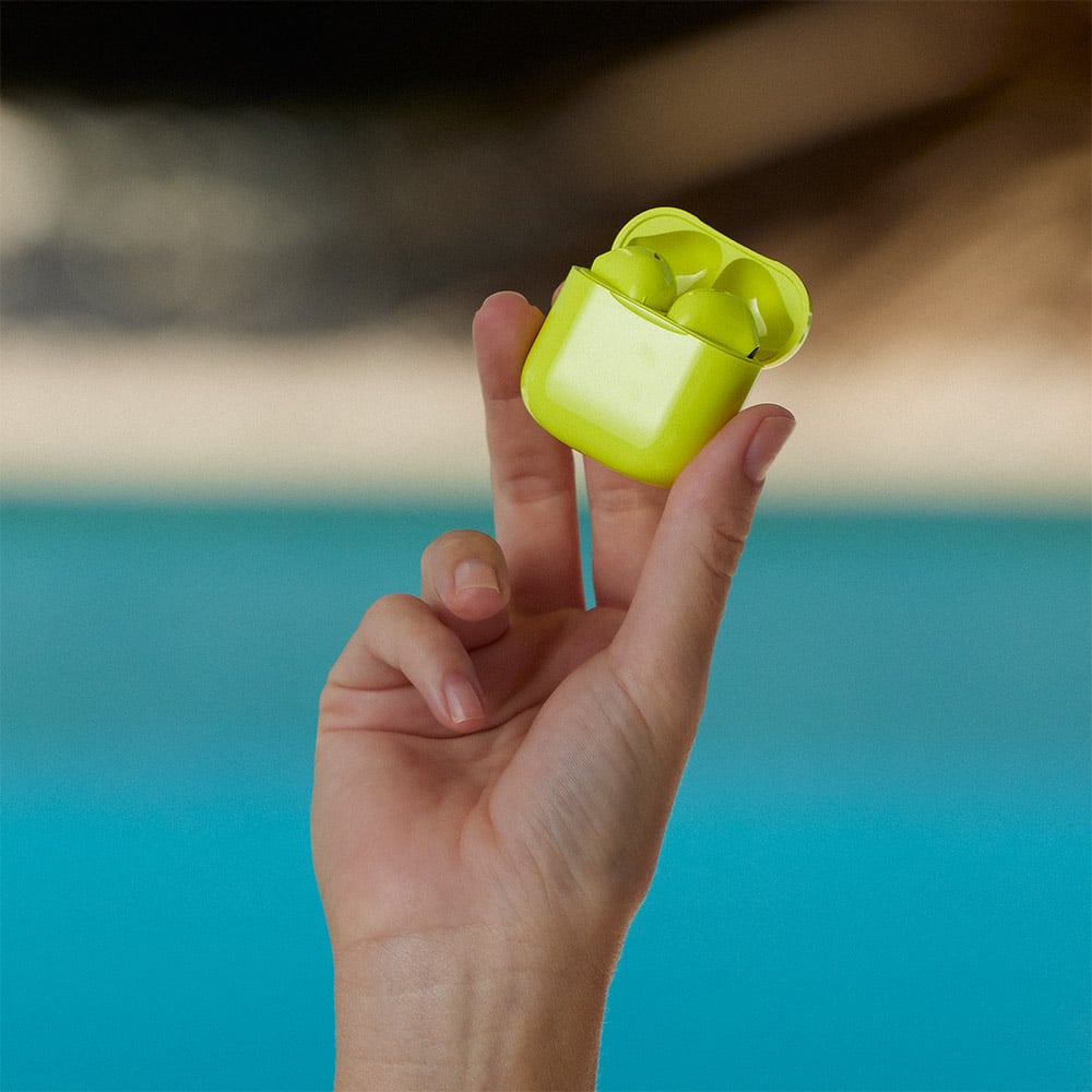 Enhance your audio experience with the AVF Neon Yellow Happy Plugs Joy True Wireless Earphones. Built for a long day haul, enjoy up to 12 hours of wireless chat and music time. It also includes a fast-charging feature for emergencies. Tap the touch surface to play or pause, perform call functions, change the volume, and access your mobile device voice control; Siri or Google Assistant. It couldn’t be easier to use. It has eco-friendly packaging with 68 percent less plastic, 48 percent less weight and 100 percent recyclable.