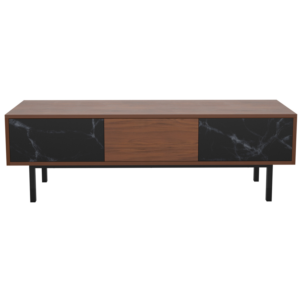 Enhance your living area with the AVF Skyline Walnut and Black Marble TV Unit 140cm. It features a sleek black frame and ample storage space for AV accessories. Perfect for TVs up to 65 inches and 50kg, this unit combines style and functionality seamlessly.