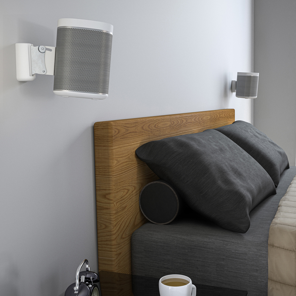Keep your speakers securely in place with the AVF White Tilt and Turn Speaker Wall Mount. Pack of 2 - it makes installation a breeze, providing maximum flexibility. With easy tilt and turn adjustments that require no tools, you can effortlessly secure the mounts in your desired location and adjust the speaker angle for optimal sound quality, enhancing your TV viewing experience. These mounts are specifically designed for use with Sonos Play:1, but are also compatible with all standard speakers weighing up to 5kg (11lbs) that have a screw thread fixing or key hole slot. It also includes cross head tightening screws and fixings for both wood stud and solid walls.