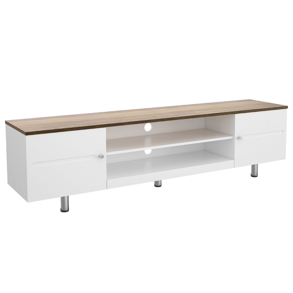 Redefine your viewing space with the AVF Whitesands 2 Door 2 Shelf Satin White TV Unit. The rustic wooden top and smooth satin finish make a stylish addition to any room. The strong and stable stand supports 12 to 85 inches of TV and up to 60kg in weight, with two sturdy shelves holding 10kg each. The closed storage cleverly hides all your consoles and devices with premium soft close hinges, while integrated cable management allows wiring to be discreetly guided through the back column for a tidy finish. Plus, simple, easy-to-follow instructions make assembly quick and easy.