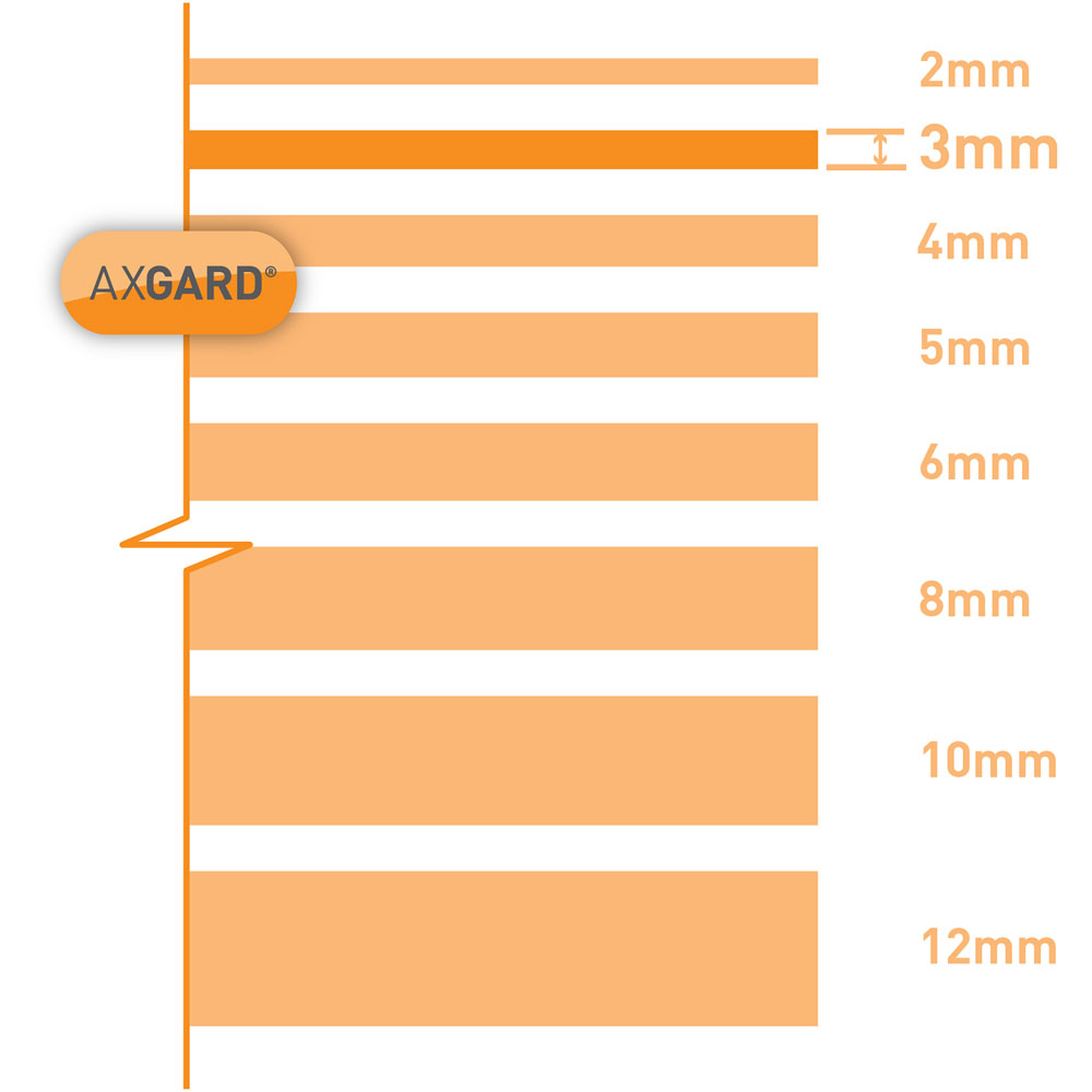 The Axgard 3mm Clear Sheet is approximately 200 times stronger than a glass of the same thickness and it is therefore classed as virtually unbreakable. Unlike other plastic glazing options, the sheet is UV protected on both sides by an additional layer which protects the material from degradation due to the effects of ultraviolet light. Due to its very high impact strength, it is easy to cut or drill without breakage. Size: 620 x 1240mm.