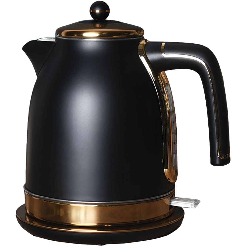 Boil water for a nice morning cuppa with this Ayano Stainless Steel Jug Kettle 1.7L. Offering a 1.7L capacity, it's loaded with useful features and has a classic black body with a gold rim to add a touch of convenience and style to your kitchen. It has a 3Kw concealed rapid-boil heating element to help you boil water quickly. It also has internal one and two-cup markings and external three to six-cup markings with a 360-degree rotational base and a removable filter for easy cleaning. Complete with dry-boil protection and automatic cut-off for safety, it'll make a practical addition to your kitchen.