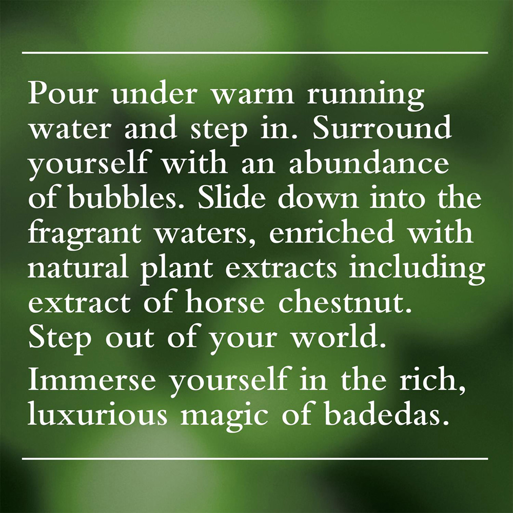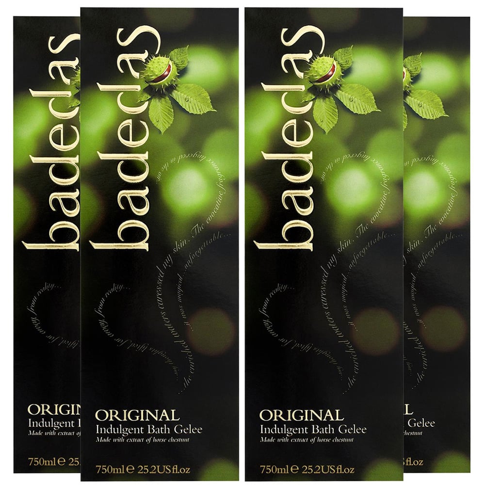 Badedas Original Indulgent Bath Gelee with chestnut extract 750ml, 4 Pack. Badedas is a unique range of premium bath and shower products containing horse chestnut, that enriches Badedas with its distinctive fragrance. Badedas products are created with natural plant extracts for a truly luxurious bathing experience. A rich bath gel with a concentrated formulation, with the distinctive Badedas fragrance and natural moisturisers to leave your skin feeling soft, delicately fragranced and leaves you feeling completely indulged. When using our Badedas Bath product for best results pour the bath gel under warm running water and step in then surround yourself with an abundance of bubbles. Slide down into the fragrant waters that are enriched with natural plant extracts including extract of horse chestnut. Step out of your world and immerse yourself with Badedas. Features: An indulgent Bath Gelee with extract of horse chestnut. Contains natural moisturisers to leave you skin feeling soft. A rich, concentrated formulation. Enriched with natural plant extracts. Made with the distinct Badedas fragrance. How to use: Pour under warm running water and step in. Surround yourself with an abundance of bubbles. Ingredients: Aqua (Water), Sodium Laureth Sulfate, Laureth-7, Cocamide DEA, Disodium Laureth Sulfosuccinate, Laureth-2, Parfum (Fragrance), Aesculus Hippocastanum (Horse Chestnut) Extract, Helianthus Annus (Sunflower Seed Oil), Tocopheryl Acetate, Calcium Pantothenate, Citric Acid, Tetrasodium EDTA, Propylene Glycol, Benzyl Benzoate, Limonene, Linalool, Methylchloroisothiazolinone, Methylisothiazolinone, CI 45350 (DandC Yellow 8), CI 61570 (DandC Green 5), CI 47005 (FDandC Yellow 10), CI 15510 (DandC Orange 4). Safety Warrings: Avoid contact with eyes. In case of contact with eyes, rinse immediately with plenty of cool water. For adult use only. Box contains: 4x Badedas Original Indulgent Bath Gelee, 750ml.