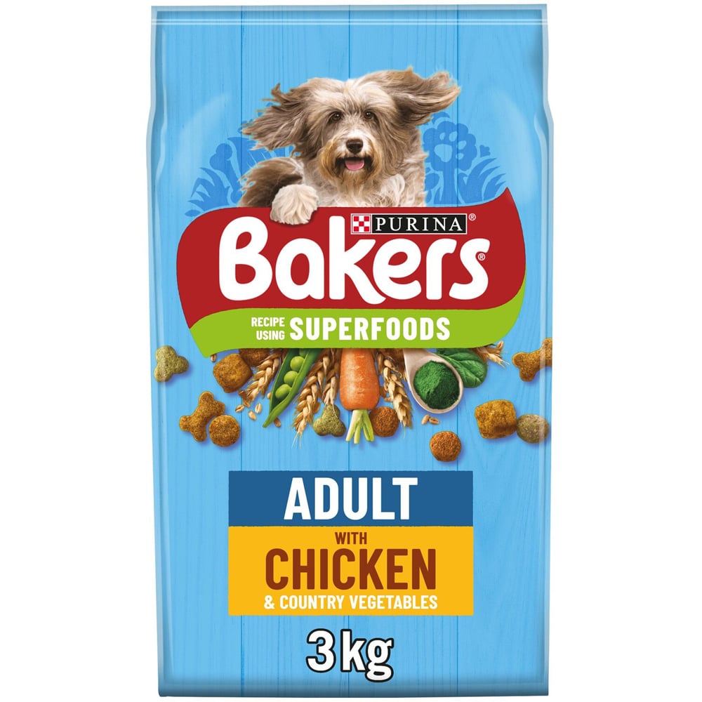 Help keep your adult dog healthy and full of vitality with this Bakers Chicken and Country Vegetable Adult Dog Dry Food. It is made using selected natural ingredients with tasty chicken, spinach and natural spirulina. Offering 100% complete nutrition, it's perfectly balanced for all your dog's daily needs with no added artificial colours, flavours, or preservatives. Size: 3kg.