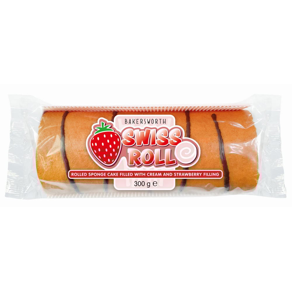 Ingredients: Cake Roll With Vanilla Flavoured Filling (33%) And With A Strawberry Spread (12%). Ingredients: Sugar, Wheat Flour, Vegetable Margarine [Vegetable Fat (Palm) And Oil (Colza), Water, Emulsifier (Mono-And Diglycerides Of Fatty Acids), Acid (Citric Acid)], Whole Egg, Strawberry Spread (12%) [Sugar, Glucose Syrup, Water, Strawberry Puree Concentrate (10%), Acid (Citric Acid), Gelling Agents (Pectin, Sodium Alginate), Acidity Regulators (Sodium Citrates, Tricalcium Phosphate), Elderberry Juice, Natural Flavouring, Preservative (Potassium Sorbate)], Wheat Starch, Stabilizers (Sorbitol, Glycerol), Water, Glucose Syrup, Soy Flour, Salt, Skimmed Milk Powder, Emulsifiers (Mono-And Diglycerides Of Fatty Acids, Sorbitan Tristearate, Lecthins (Soy)), Vegetable Fats (Palm Kernel), Raising Agent (Disodium Diphosphate, Sodium Hydrogen Carbonate, Fat Reduced Cocoa Powder, Natural Flavouring, Thickener (Xanthan Gum).
