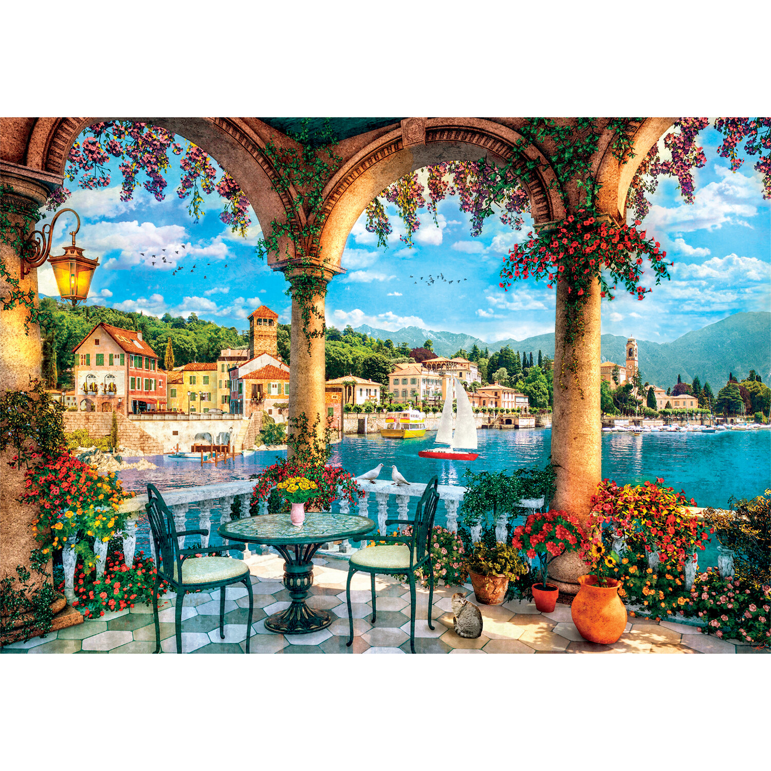 Escape to the serene beauty of Italy with the Balcony View of Lake Como 1000 Piece Jigsaw Puzzle. Once completed, this stunning puzzle reveals a breathtaking lakeside scene, perfect for puzzle enthusiasts who appreciate scenic landscapes.