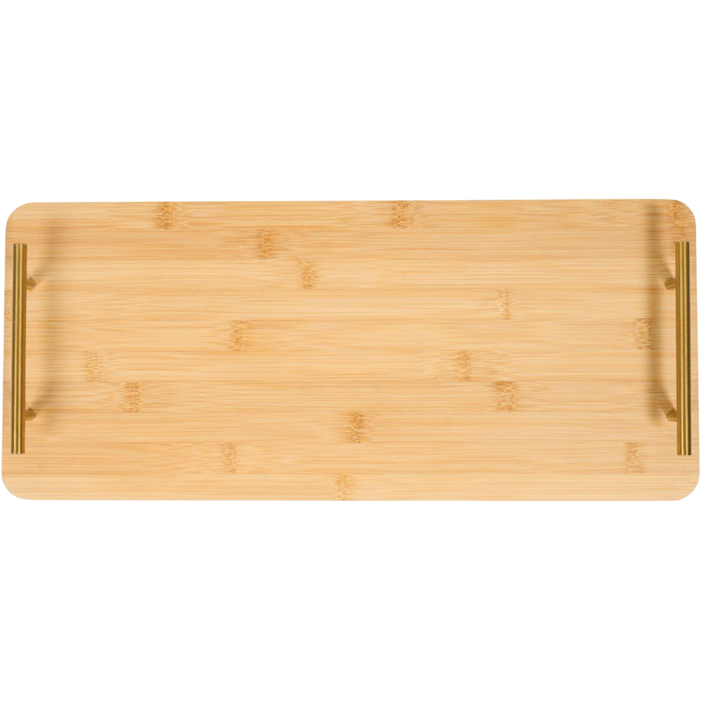 Add style and functionality to your kitchen with the Bamboo Serving Board with Antiqued Handles. This large bamboo board features two metal side handles with a sophisticated antique gold finish, making it perfect for use as a centrepiece platter. Made from sustainable bamboo, the board combines eco-friendliness with practicality.