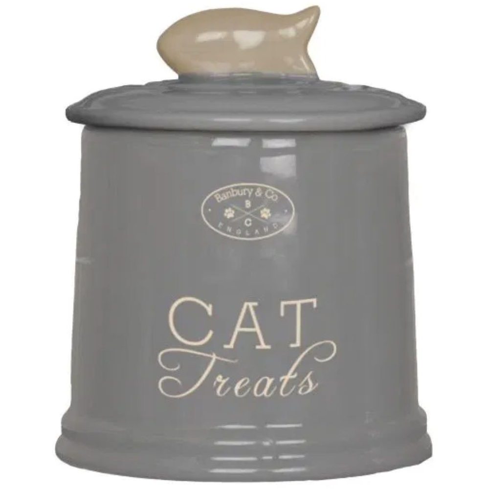 Banbury and Co Ceramic Cat Storage Jar: A Purr-fect Blend of Style and Function! Introducing the Banbury and Co Ceramic Cat Storage Jar, a charming addition to your home that combines aesthetic appeal with practicality. This jar's neutral and elegant design effortlessly complements any decor, making it a delightful accent piece for cat lovers and pet owners alike. Ample Storage Capacity: With its generous size, this ceramic jar provides ample space to keep a delightful assortment of treats for your beloved feline companion. From tasty catnip snacks to crunchy treats, you can now have a variety of goodies conveniently stored in one place. Safety First: We prioritize the well-being of your pet, and that's why our cat storage jar is crafted with the highest standards of safety in mind. The nontoxic paint used on this product ensures that your furry friend's treats remain free from harmful chemicals, offering peace of mind for responsible pet owners. Easy-Care Convenience: Cleaning up is a breeze with our versatile storage jar. Whether you prefer the convenience of a dishwasher or the loving touch of handwashing, this product is built to withstand both methods, ensuring its longevity and maintaining its pristine appearance. A Thoughtful Gift: Searching for a thoughtful gift for a cat enthusiast? Look no further! The Banbury and Co Ceramic Cat Storage Jar makes for an exquisite present that will surely be appreciated and cherished by any pet owner or cat lover. Embrace the perfect blend of style and function with the Banbury and Co Ceramic Cat Storage Jar. Organize your cat's treats with elegance, and add a touch of sophistication to your home Bring joy to your feline friend and elevate your pet care routine with this charming storage jar. Treat your cat to a world of delectable surprises, conveniently stored and ready to be shared in moments of affection and bonding Make this lovely storage jar a part of your cat's daily life, and let it stand as a symbol of the love and care you shower upon your precious feline companion. Choose the Banbury and Co Ceramic Cat Storage Jar today, and create a space where style meets practicality for you and your beloved cat!